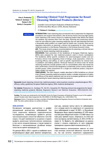 ЦЕЛЬ. Подготовка рекомендаций по планированию программы клинических исследований лекарственных препаратов для очищения кишечника.