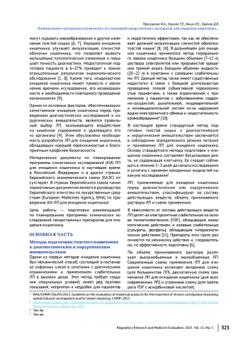 ВЫВОДЫ. Основные методологические подходы, изложенные в Руководстве ЕМА по проведению КИ ЛП для очищения кишечника, позволяют оценить эффективность и безопасность указанных ЛП и могут быть взяты за основу при подготовке рекомендаций к планированию программы КИ ЛП препаратов для очищения кишечника.