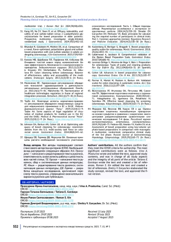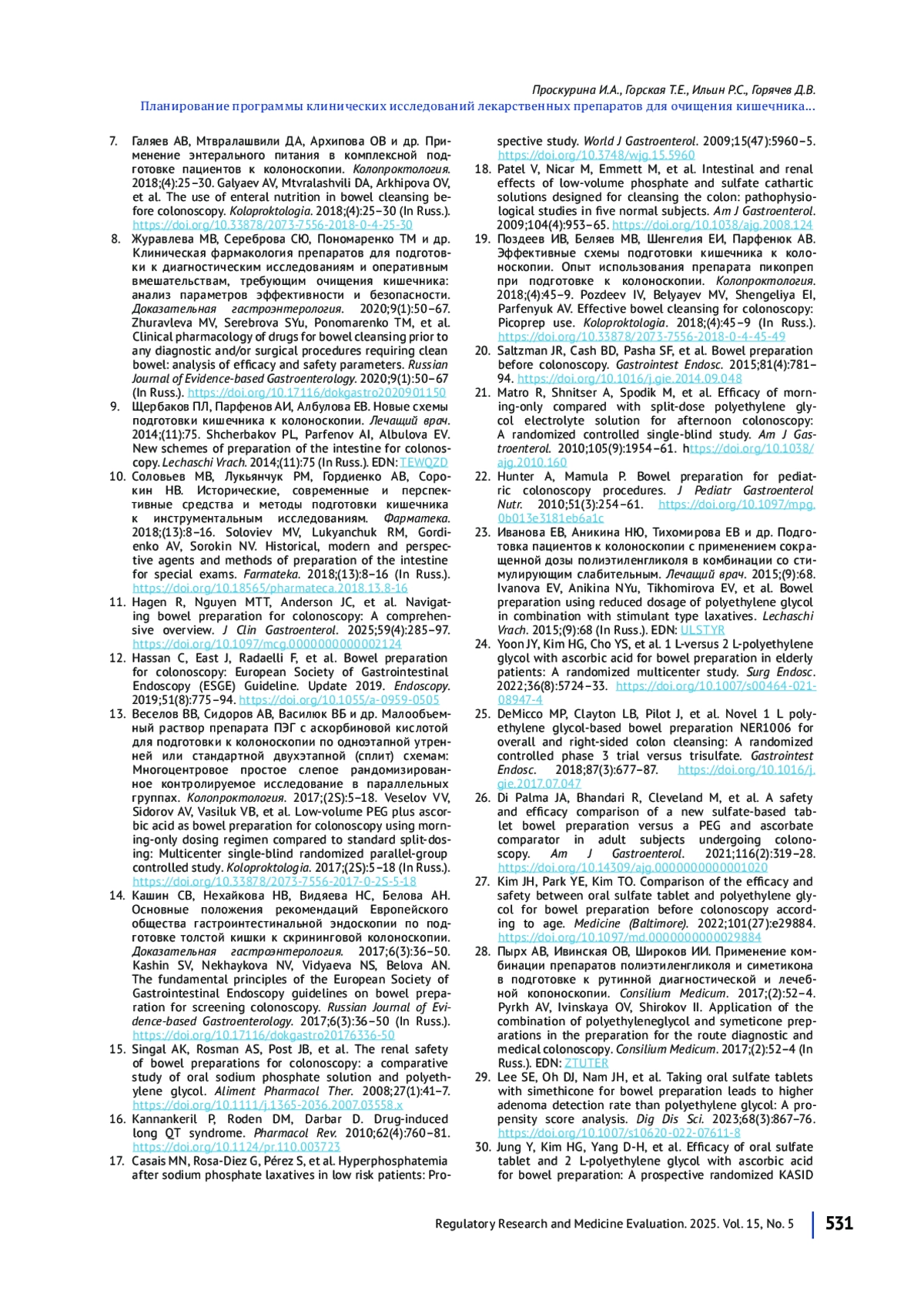 8. Журавлева МВ, Сереброва СЮ, Пономаренко ТМ и др. Клиническая фармакология препаратов для подготовки к диагностическим исследованиям и оперативным вмешательствам, требующим очищения кишечника: анализ параметров эффективности и безопасности. Доказательная гастроэнтерология. 2020;9(1):50-67. DOI: 10.17116/dokgastro2020901150