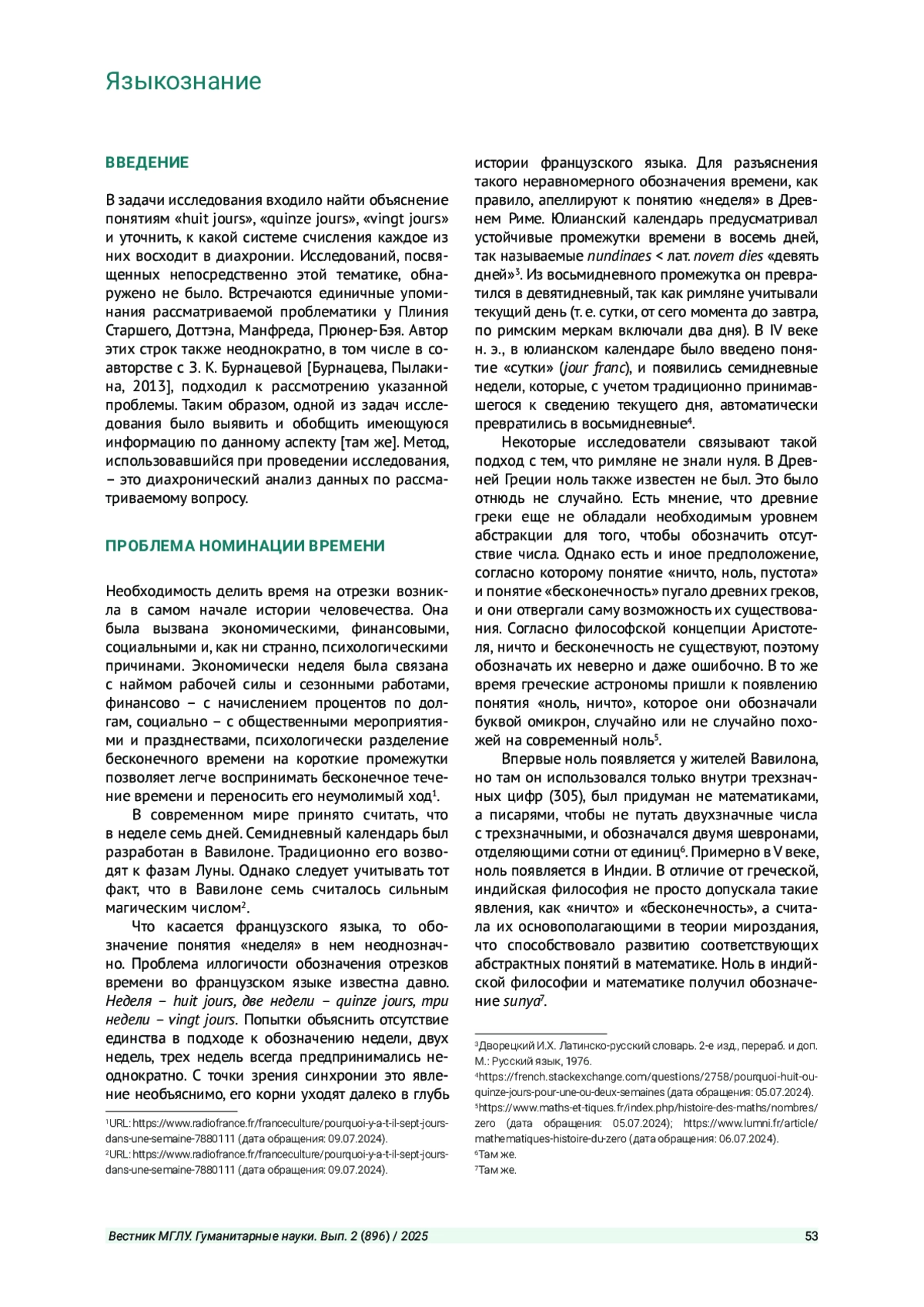 В задачи исследования входило найти объяснение понятиям «huit jours», «quinze jours», «vingt jours» и уточнить, к какой системе счисления каждое из них восходит в диахронии. Исследований, посвященных непосредственно этой тематике, обнаружено не было. Встречаются единичные упоминания рассматриваемой проблематики у Плиния Старшего, Доттэна, Манфреда, Прюнер-Бэя. Автор этих строк также неоднократно, в том числе в соавторстве с З. К. Бурнацевой [Бурнацева, Пылакина, 2013],