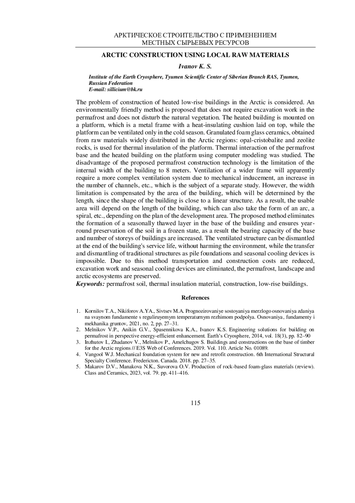 ИВАНОВ К. С. АРКТИЧЕСКОЕ СТРОИТЕЛЬСТВО С ПРИМЕНЕНИЕМ МЕСТНЫХ СЫРЬЕВЫХ РЕСУРСОВ // УЧЕНЫЕ ЗАПИСКИ КРЫМСКОГО ФЕДЕРАЛЬНОГО УНИВЕРСИТЕТА ИМЕНИ В. И. ВЕРНАДСКОГО. ГЕОГРАФИЯ. ГЕОЛОГИЯ. 2025. ТОМ 11 (77). № 3