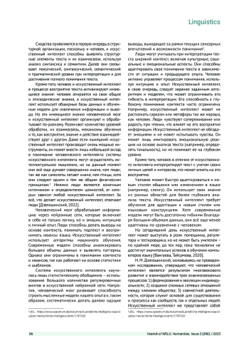 9. Максимов Ю. В., Клышинский Э.С., Антонов Н. В. Проблема понимания в системах искусственного интеллекта // Новые информационные технологии в автоматизированных системах. 2016. № 19. C. 43-60. EDN: VTZNYR