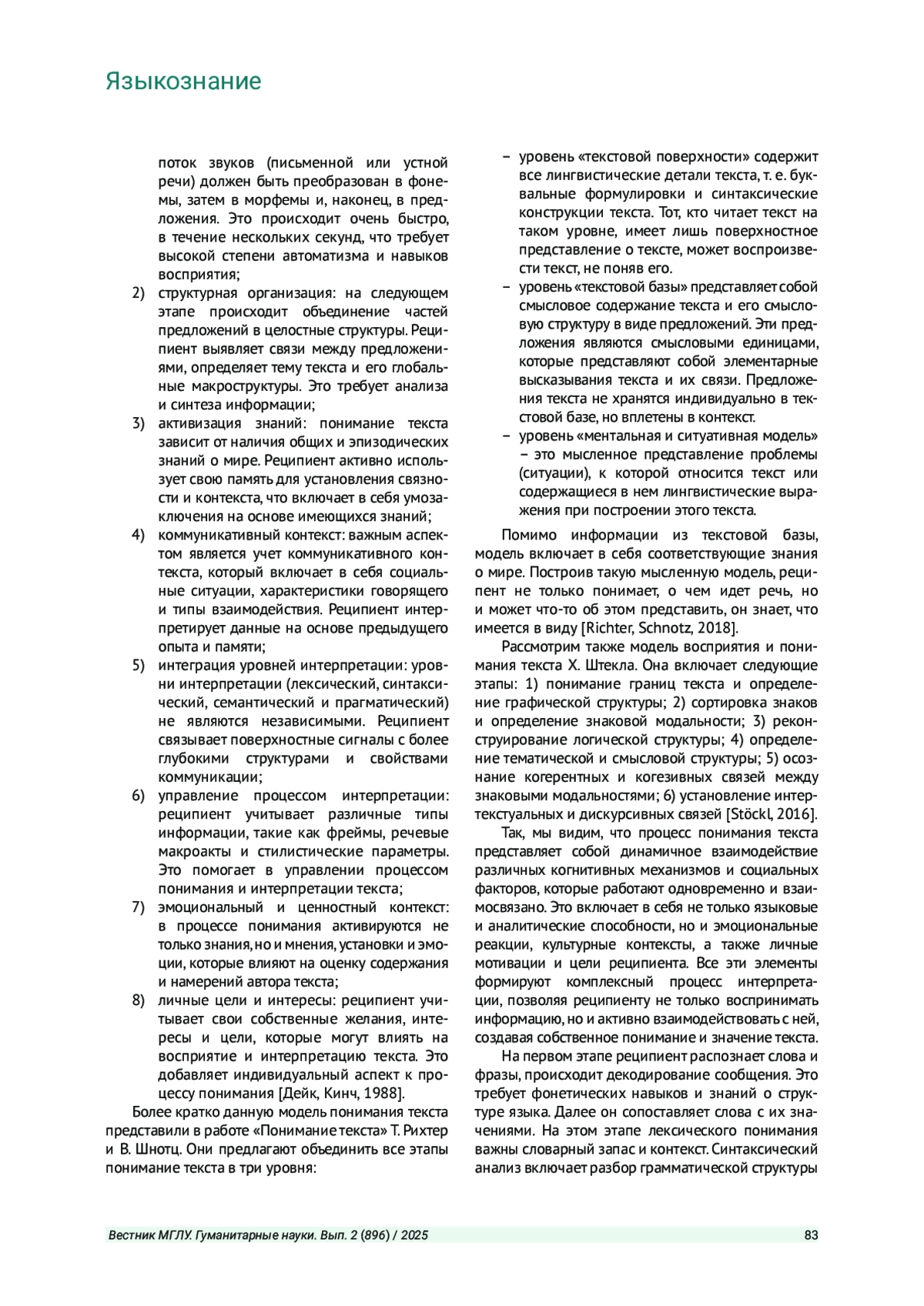 7. Richter T., Schnotz W. Textverstehen // Handwörterbuch Pädagogische Psychologie / Hrsg. D. Rost & J. Sparfeldt. Weinheim: Beltz, 2018.