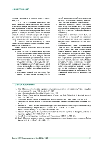 3. Kuno S. Subject. Theme and the Speaker’s Empathy // Subject and Topic. Ed. by Ch.-N. Li. New-York: Academic Press, 1976. P. 417-444.