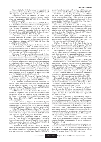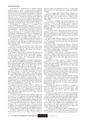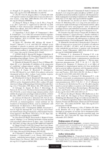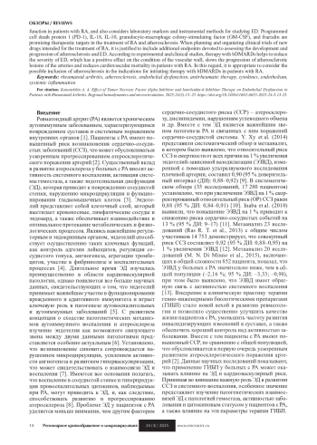 Ключевые фразы: ревматоидный артрит, эндотелий, атеросклероз, эндотелиальная дисфункция, противоревма- тическая терапия, цитокины, системное воспаление