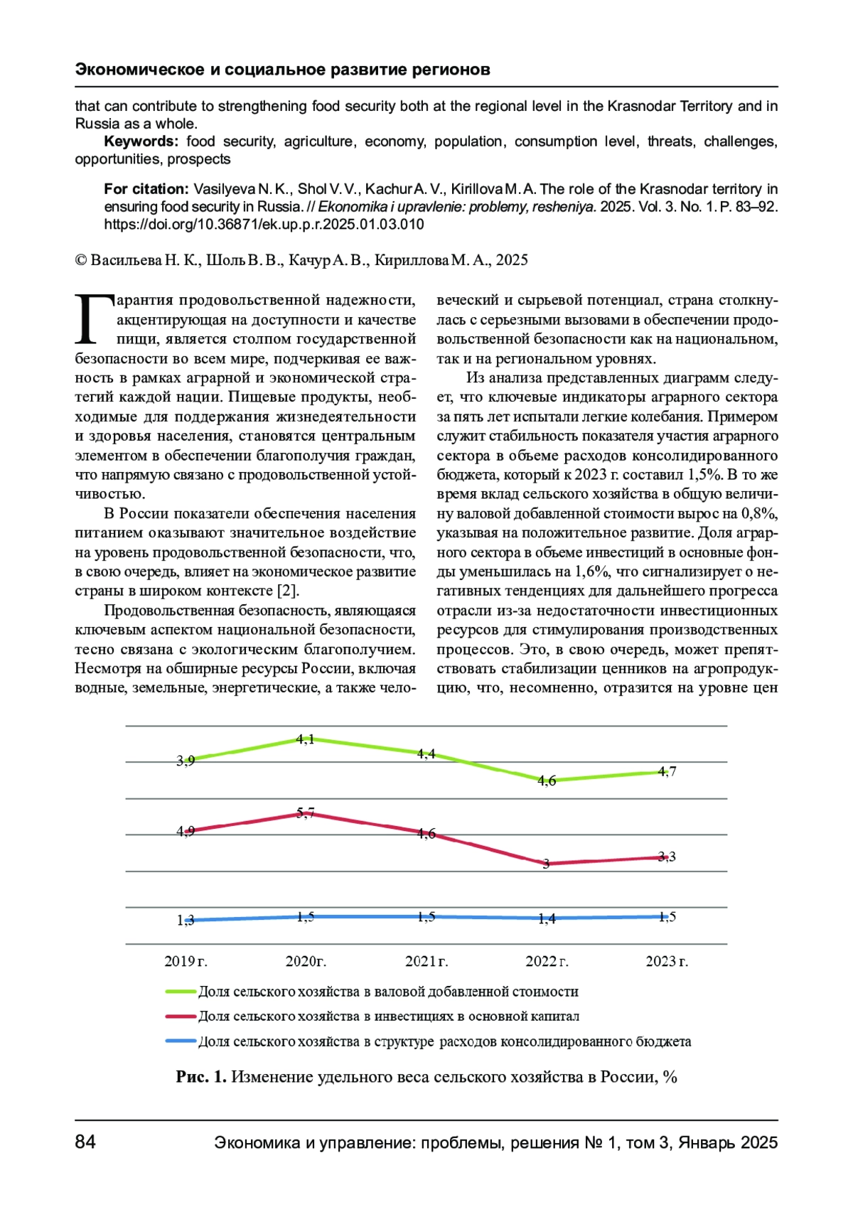 3. Барчо М. Х., Алексеенко Л. Д. и др. Развитие АПК как фактор обеспечения продовольственной безопасности России // Вестник Академии знаний. 2023. № 54(1). C. 45-50. EDN: NJCAUG