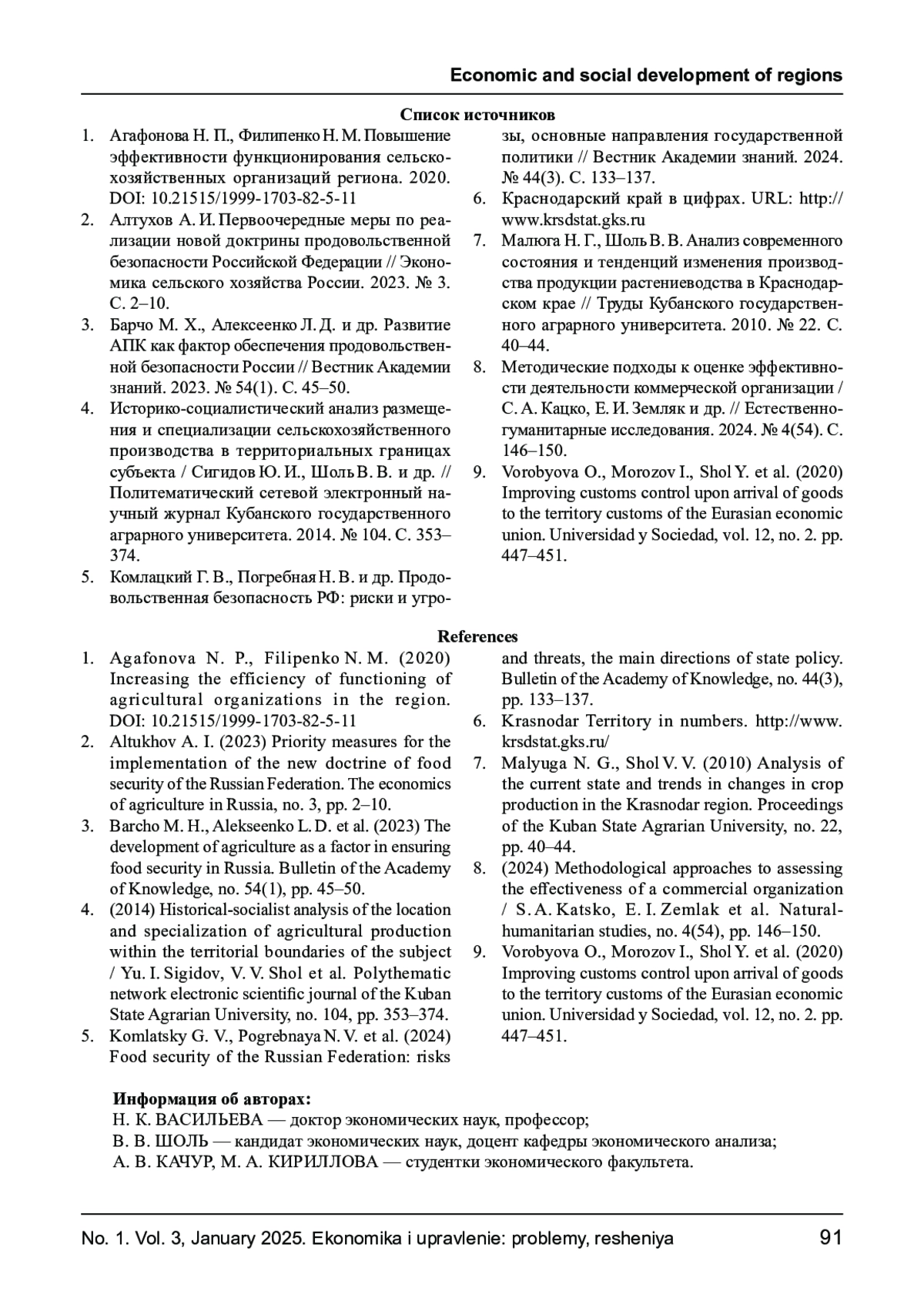 1. Агафонова Н. П., Филипенко Н. М. Повышение эффективности функционирования сельско-хозяйственных организаций региона. 2020. DOI: 10.21515/1999-1703-82-5-11