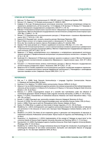13. Кунцевич С. Е. Психологические аспекты политического дискурса // Вестник Минского государственного лингвистического университета. Серия 1. Филология. 2005. № 4 (20). С. 37-50.