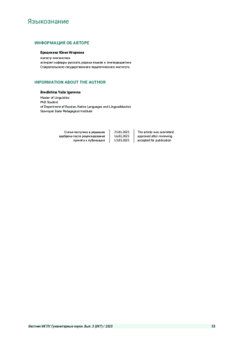 4. Бубнова Г. И. Лингвокогнитивный анализ научного текста: гибридизация под воздействием многоканального порождения // Вестник Московского государственного лингвистического университета. Гуманитарные науки. 2024. Вып. 13 (894). С. 23-30. EDN: TTRAHJ