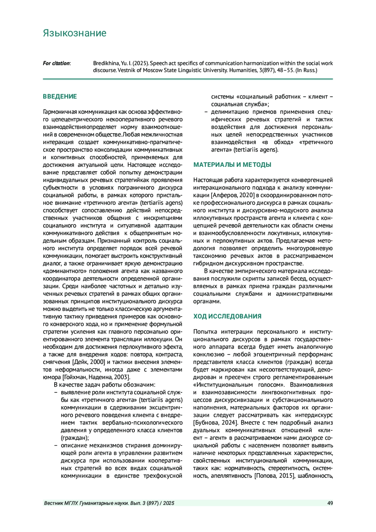 10. Бредихина Ю. И. Антропоцентрические и когнио-коммуникативные основания делимитации релевантности и пертинентности в дискурсе социальной работы // Вестник Ставропольского государственного педагогического института. 2023. № 2 (20). С. 28-37. EDN: CWGHBU