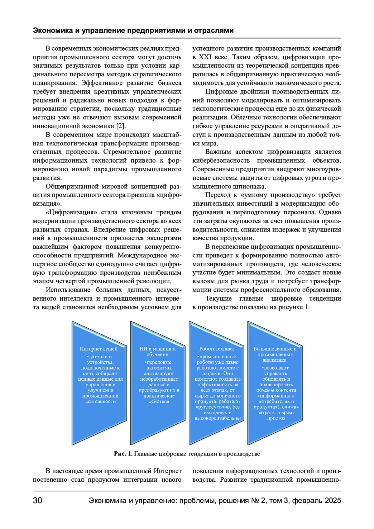 4. Андрианов К. Н., Лапенкова Н. В., Толкачев С. А. Интеллектуальное производство сквозь призму четвертой промышленной революции // Мир новой экономики. - 2023. - № 4. - С. 28-38.