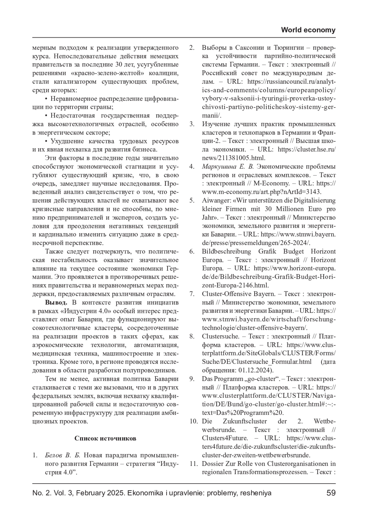 1. Белов В. Б. Новая парадигма промышленного развития Германии - стратегия “Индустрия 4.0”.
