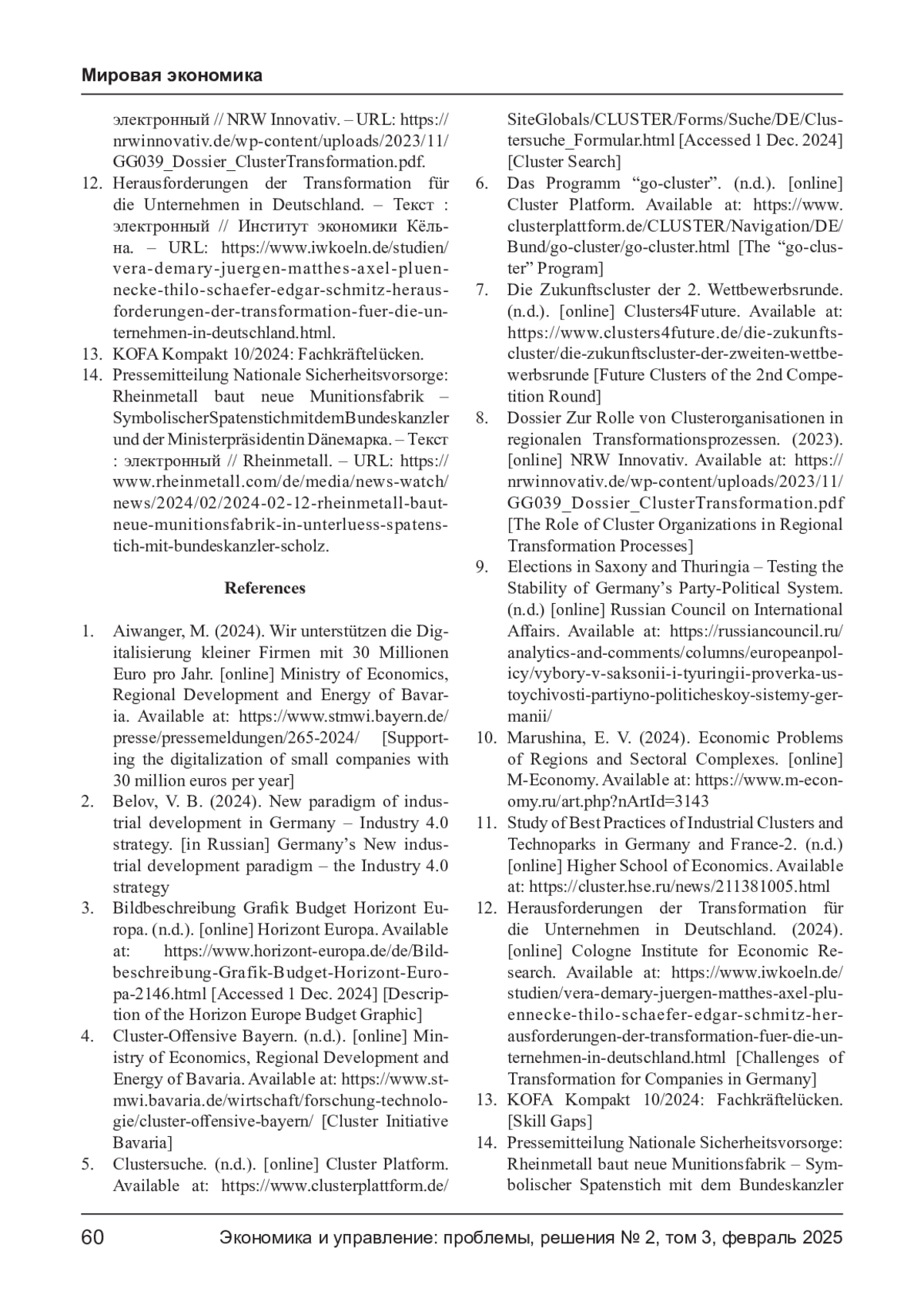 8. Clustersuche. - Текст: электронный // Платформа кластеров. - URL: https://www.clusterplattform.de/SiteGlobals/CLUSTER/Forms/Suche/DE/Clustersuche_Formular.html (дата обращения: 01.12.2024).