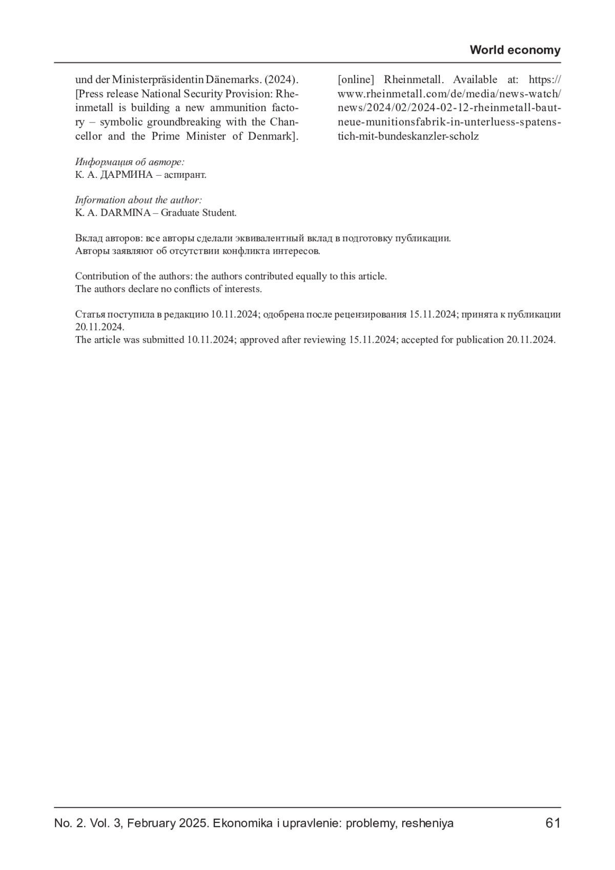 14. Pressemitteilung Nationale Sicherheitsvorsorge: Rheinmetall baut neue Munitionsfabrik - Symbolischer Spatenstich mit dem Bundeskanzler und der Ministerpräsidentin Dänемарка. - Текст: электронный // Rheinmetall. - URL: https://www.rheinmetall.com/de/media/news-watch/news/2024/02/2024-02-12-rheinmetall-bautneue-munitionsfabrik-in-unterluess-spatenstich-mit-bundeskanzler-scholz.