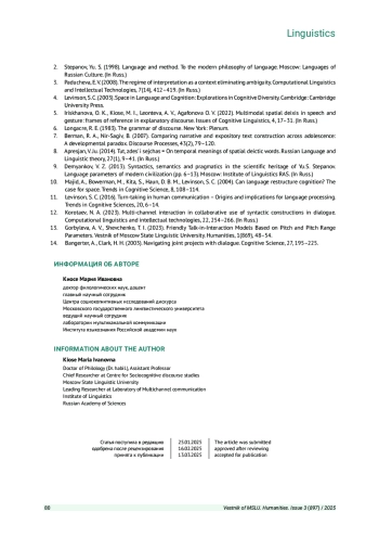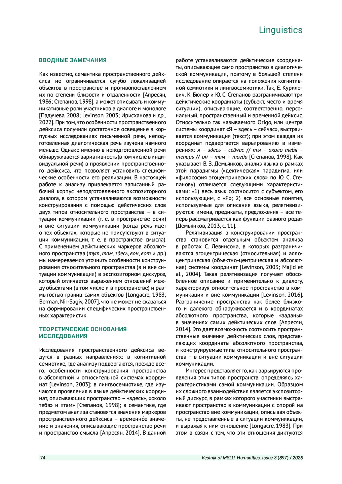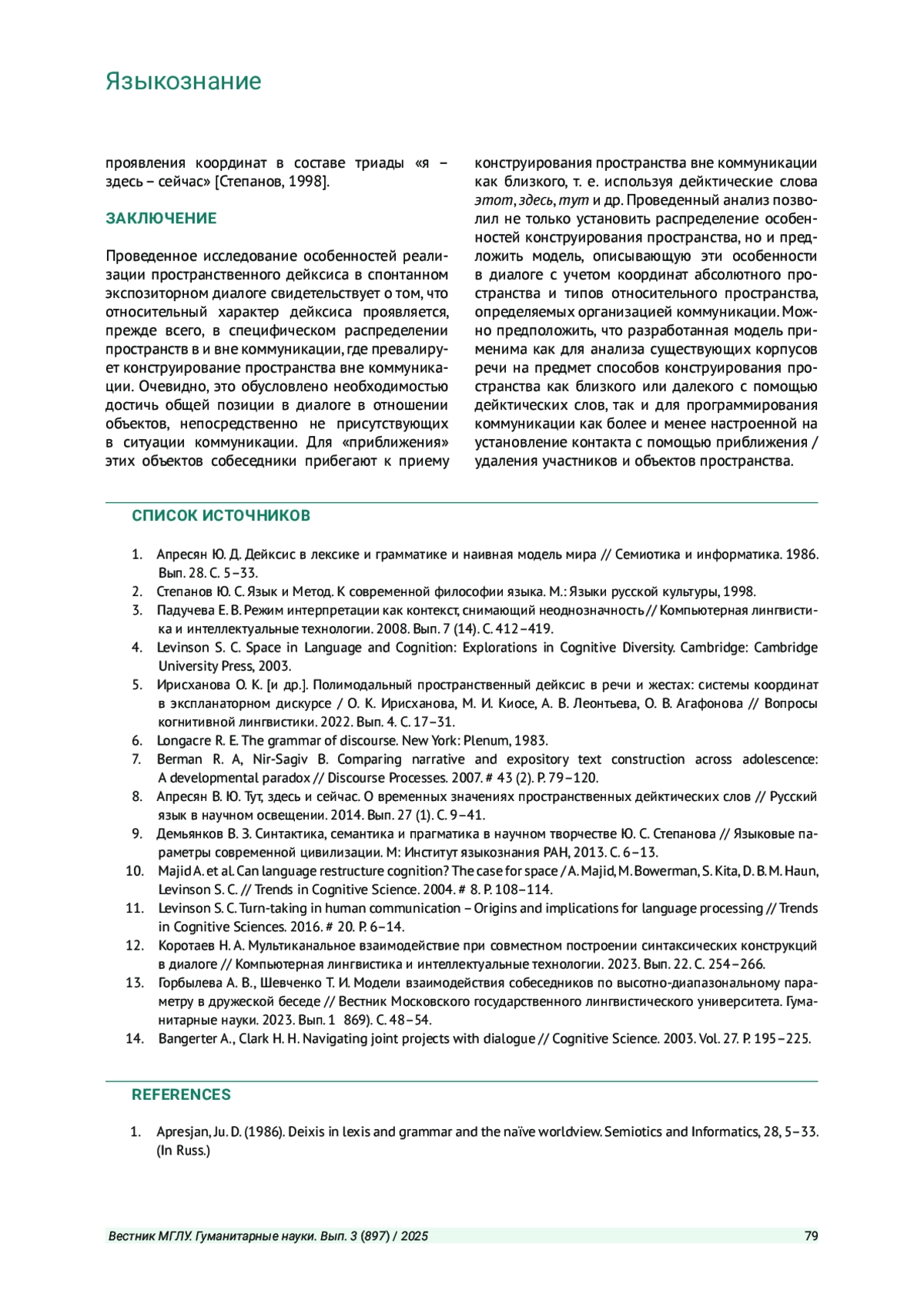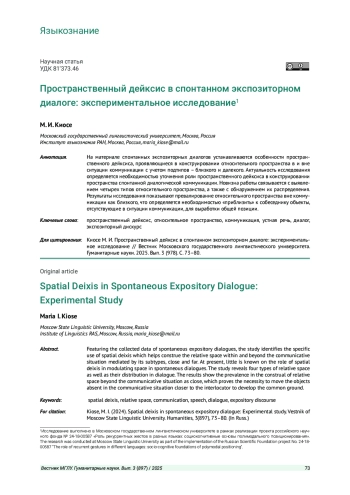 Статья: ПРОСТРАНСТВЕННЫЙ ДЕЙКСИС В СПОНТАННОМ ЭКСПОЗИТОРНОМ ДИАЛОГЕ: ЭКСПЕРИМЕНТАЛЬНОЕ ИССЛЕДОВАНИЕ (2025)