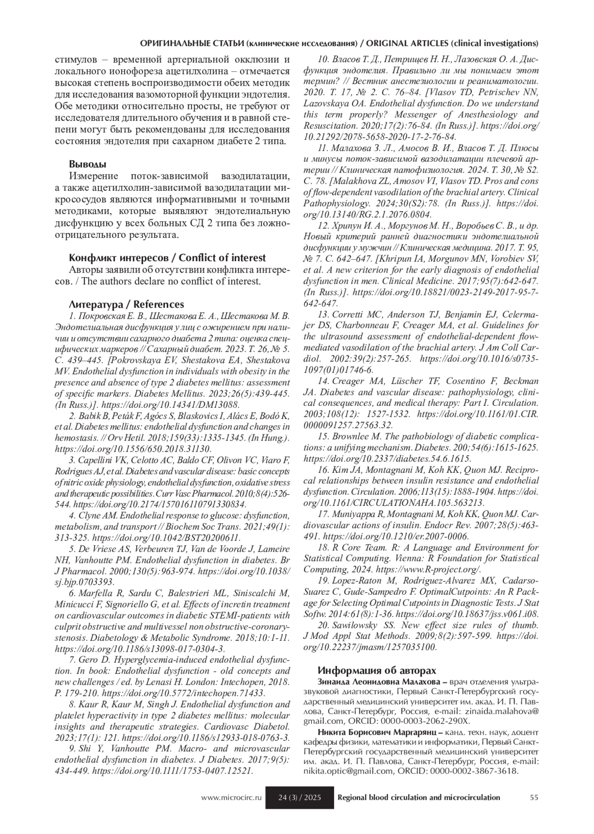 11. Малахова З. Л., Амосов В. И., Власов Т. Д. Плюсы и минусы поток-зависимой вазодилатации плечевой артерии // Клиническая патофизиология. 2024. Т. 30, № S2. С. 78.