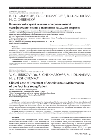 7. Кондрашин С. А., Серова Н. С., Кобликов В. В., Кузьменков Д. В. Артериовенозная мальформация стопы: диагностика и эндоваскулярное лечение // Российский электронный журнал лучевой диагностики. 2015. Т. 5, №2. С. 62-66.