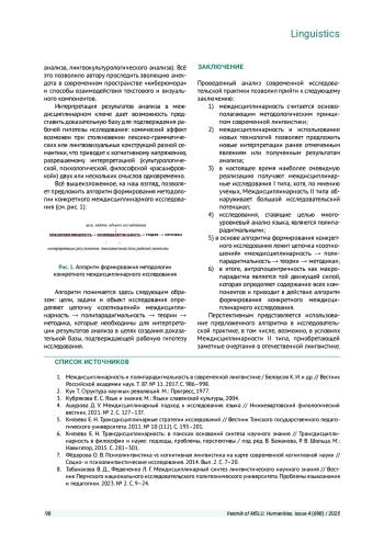 Статья: МЕЖДИСЦИПЛИНАРНОСТЬ В СОВРЕМЕННОЙ ИССЛЕДОВАТЕЛЬСКОЙ ПРАКТИКЕ (НА МАТЕРИАЛЕ ПРЕДМЕТНОЙ ОБЛАСТИ «ЯЗЫКОЗНАНИЕ») (2025)