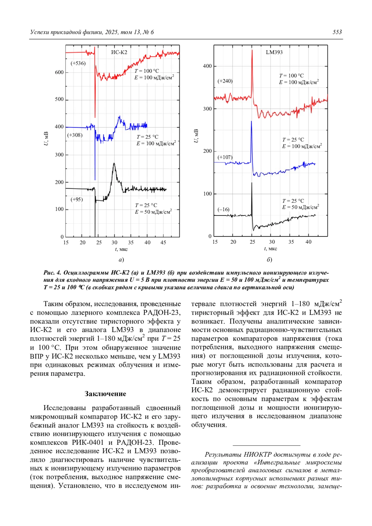 Статья: Исследования радиационной стойкости сдвоенного микромощного компаратора напряжения (2025)