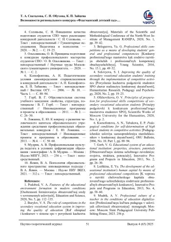 3. Белогурова, Я. Г. Конкурсы профессионального мастерства как средство развития общих и профессиональных компетенций обучающихся / Я. Г. Белогурова. - Текст : непосредственный // Молодой ученый. - 2016. - № 15.1. - С. 49-52.
