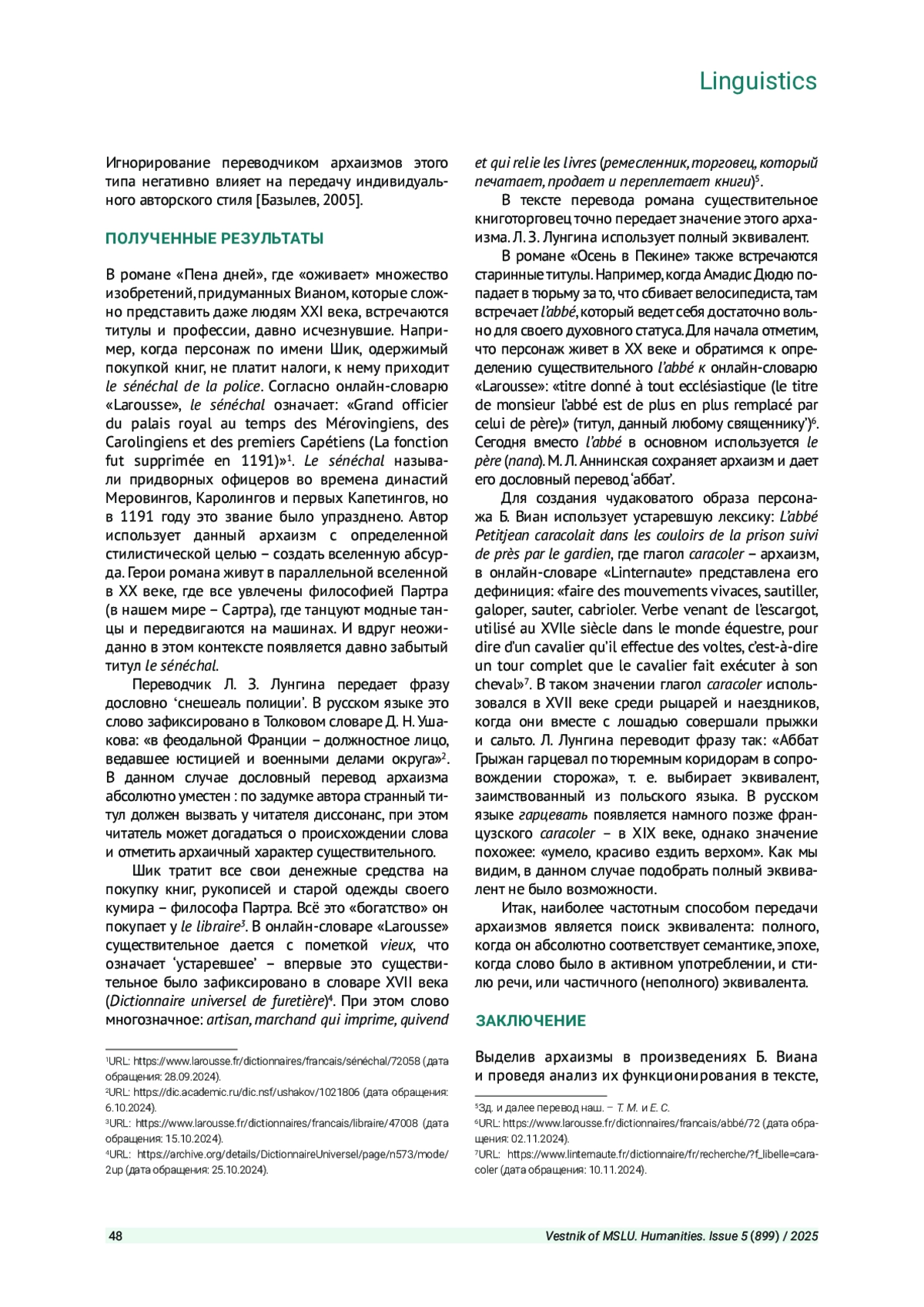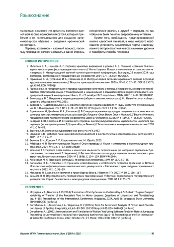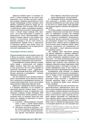 Статья: ОСОБЕННОСТИ ПЕРЕВОДА АРХАИЗМОВ В ХУДОЖЕСТВЕННОМ ТЕКСТЕ (НА МАТЕРИАЛЕ ФРАНЦУЗСКОЙ ЛИТЕРАТУРЫ XX ВЕКА) (2025)