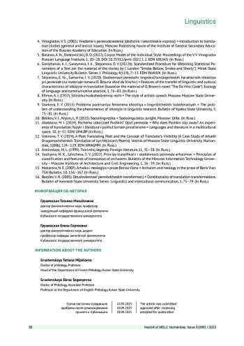 Журнал: ВЕСТНИК МОСКОВСКОГО ГОСУДАРСТВЕННОГО ЛИНГВИСТИЧЕСКОГО УНИВЕРСИТЕТА. ГУМАНИТАРНЫЕ НАУКИ