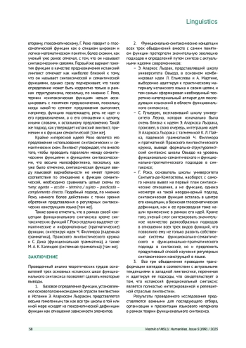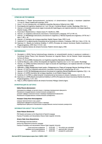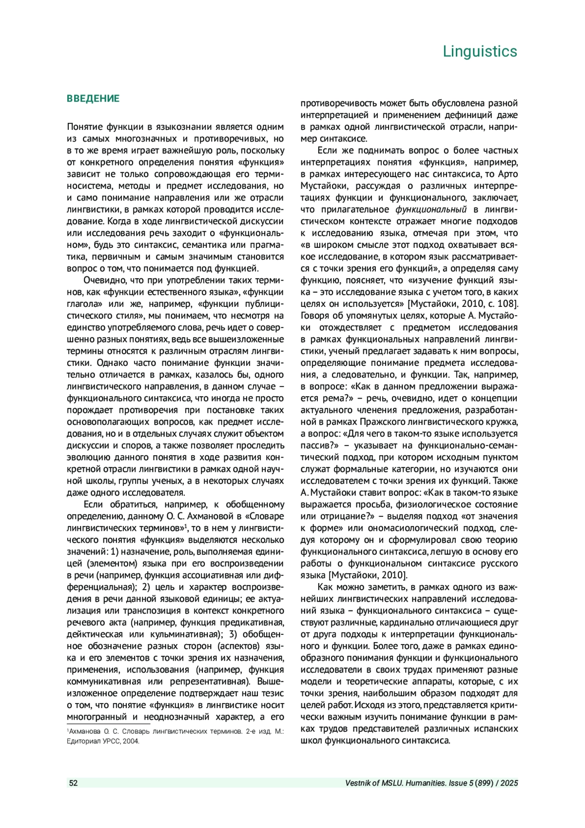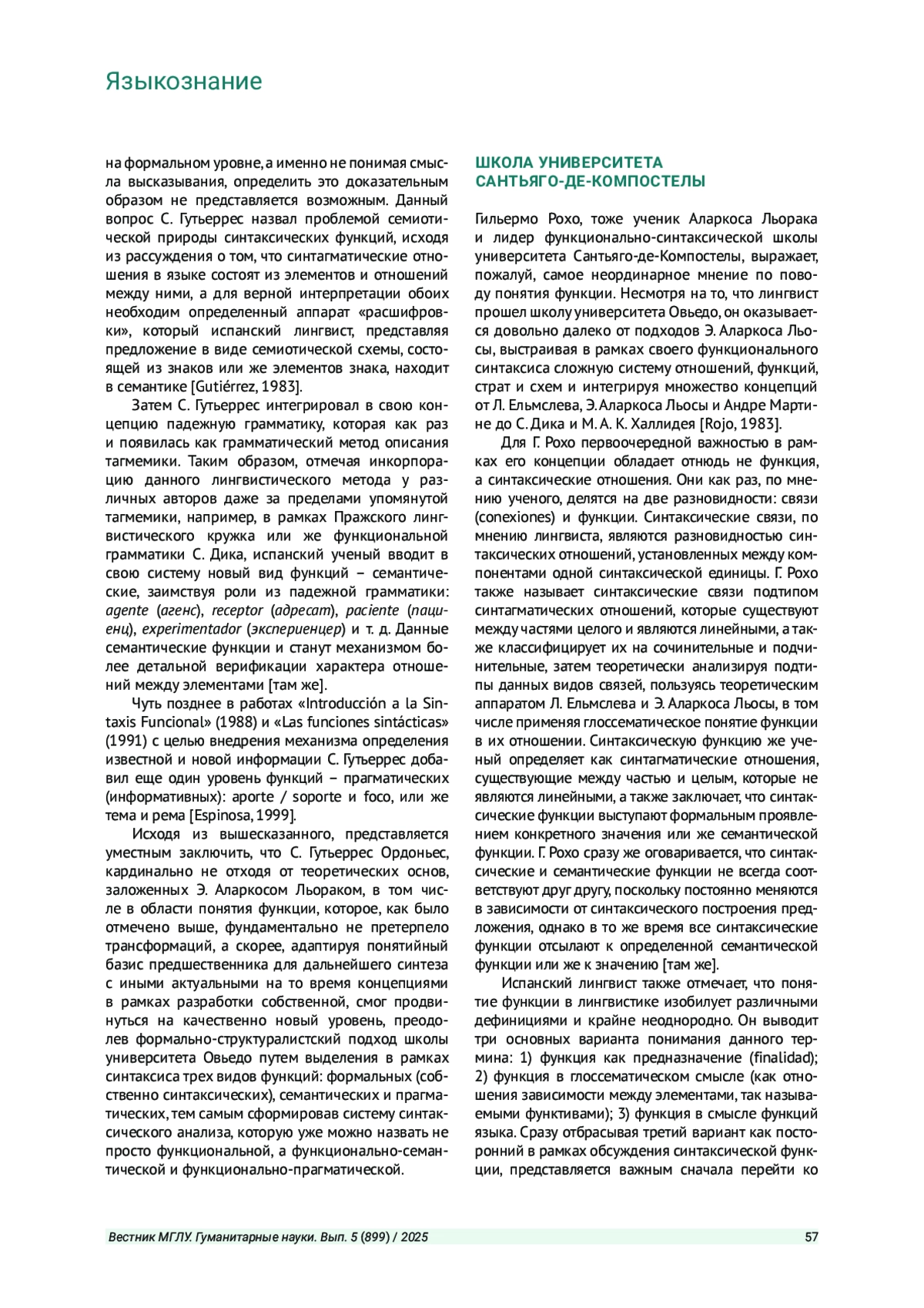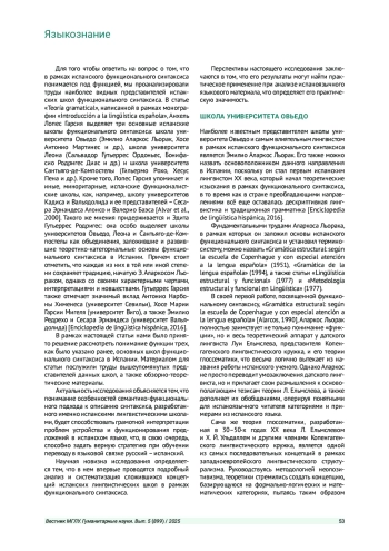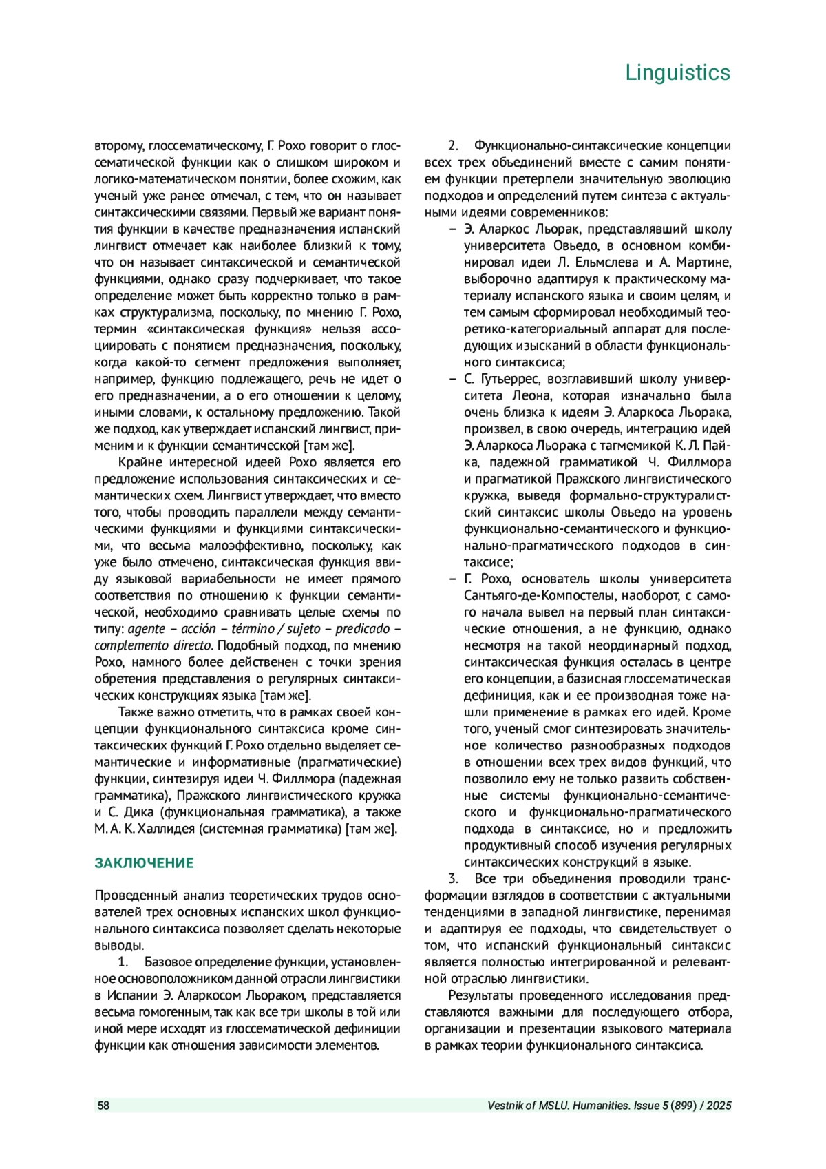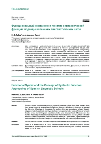 Статья: ФУНКЦИОНАЛЬНЫЙ СИНТАКСИС И ПОНЯТИЕ СИНТАКСИЧЕСКОЙ ФУНКЦИИ: ПОДХОДЫ ИСПАНСКИХ ЛИНГВИСТИЧЕСКИХ ШКОЛ (2025)