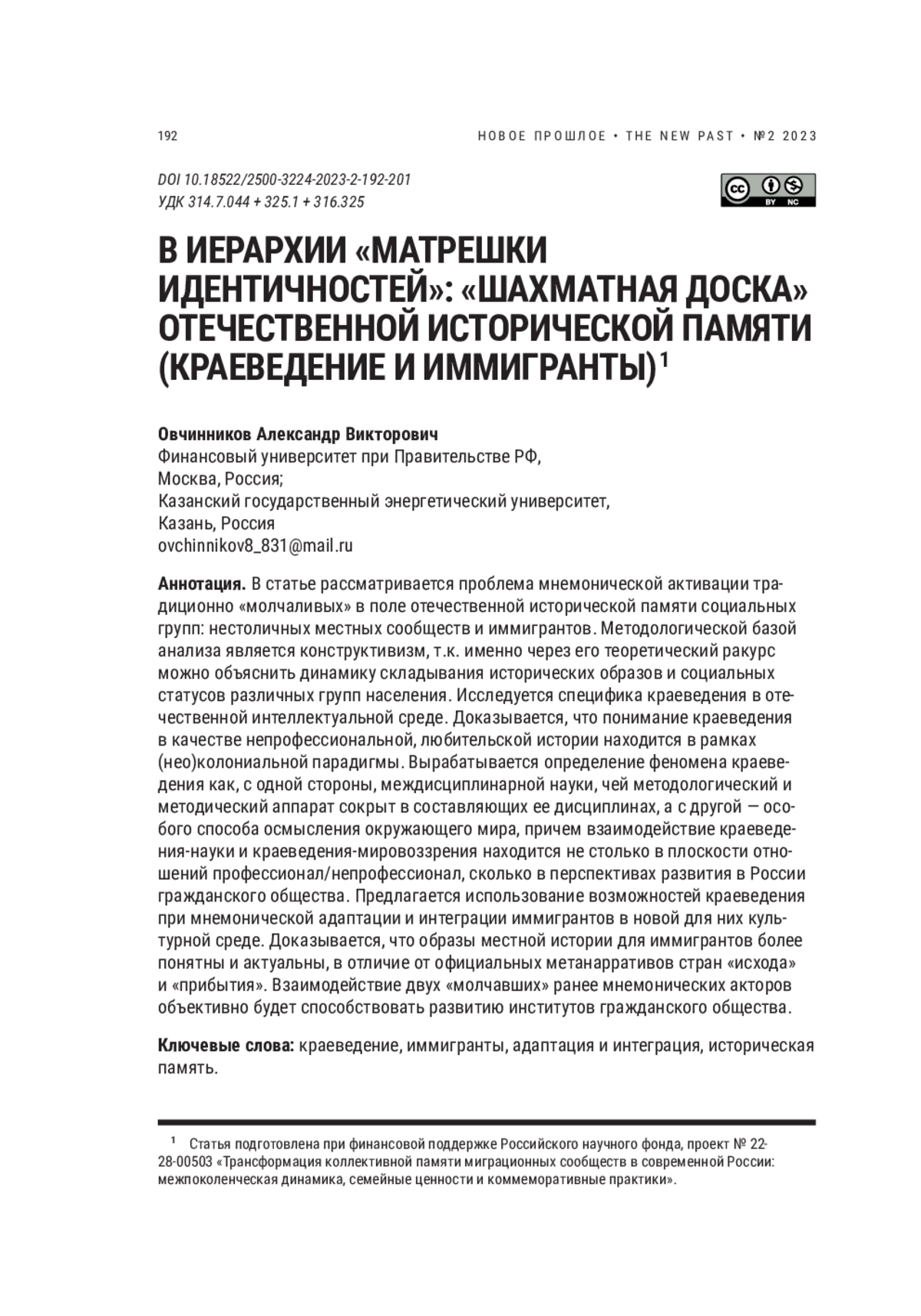 7. Овчинников А.В. К проблеме преемственности советских и постсоветских региональных национальных историй: по материалам ТАССР/Татарстана // Историческая память в постнациональном мире: мифы, ритуалы, репрезентации. Сборник статей по итогам Всероссийской научной конференции. Саратов: ИЦ “Наука”, 2017. С. 86-96. EDN: ZWVBAF