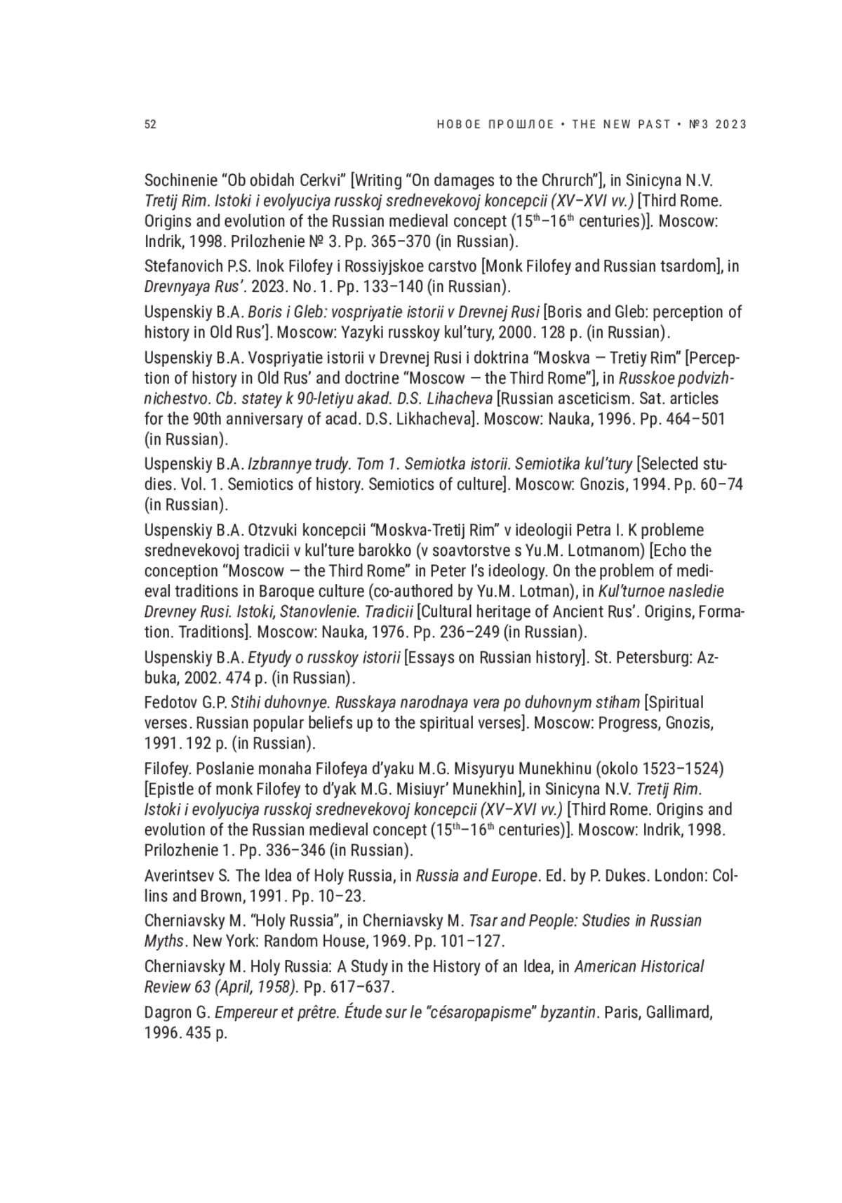 38. Успенский Б.А. Восприятие истории в Древней Руси и доктрина “Москва - Третий Рим” // Русское подвижничество. Cб. статей к 90-летию акад. Д.С. Лихачева. М.: Наука, 1996. С. 464-501.