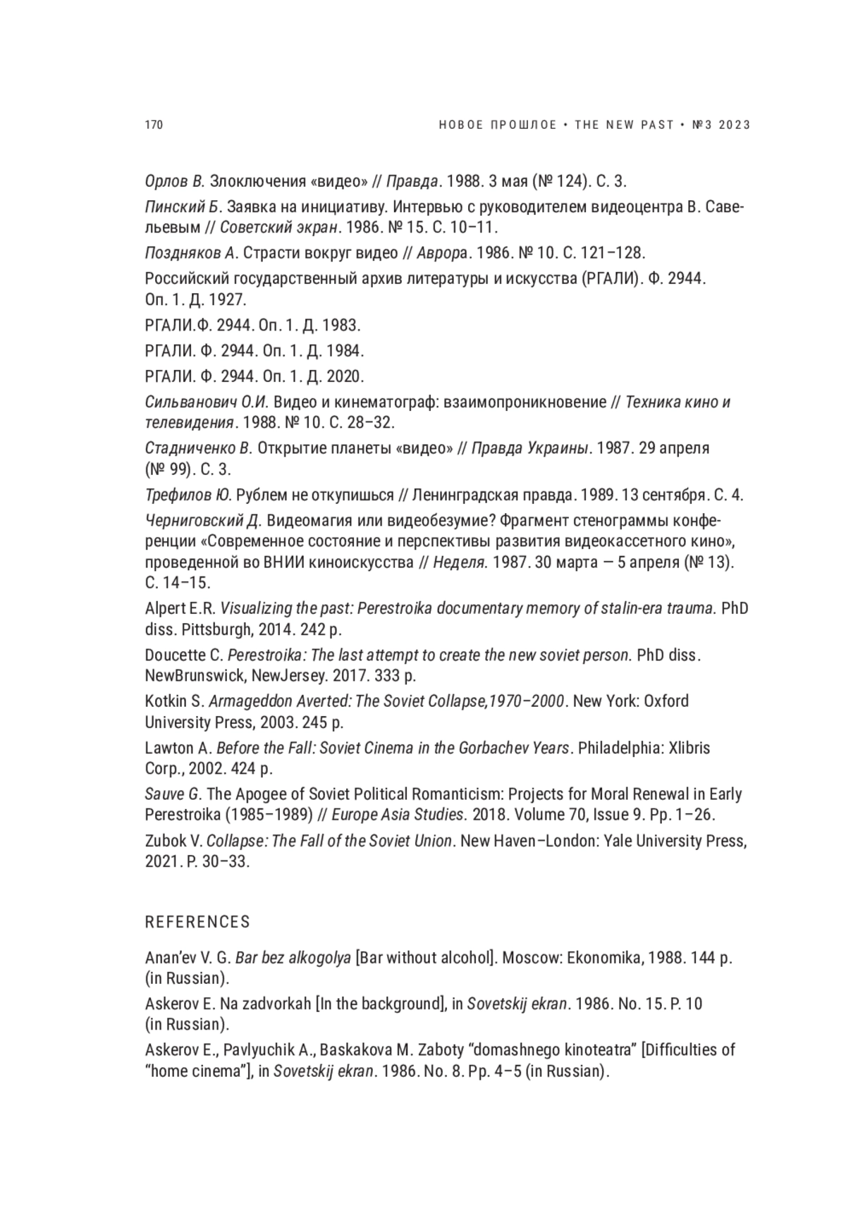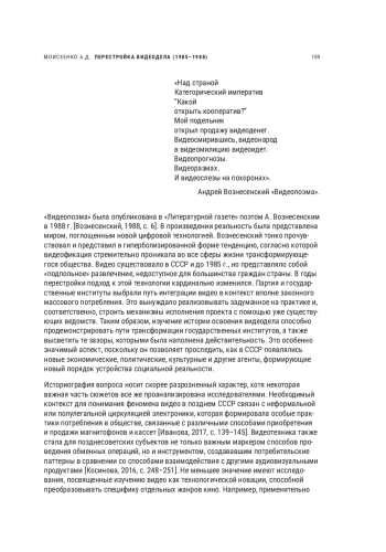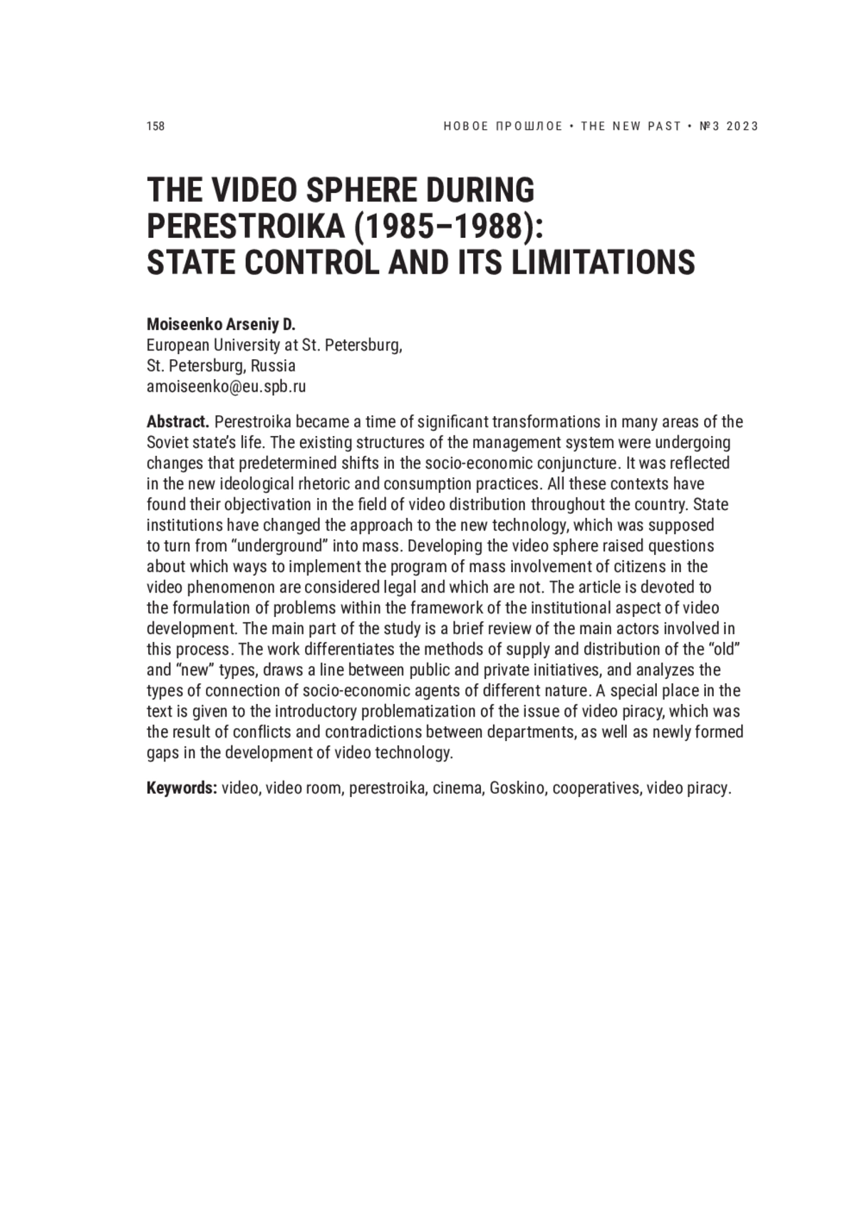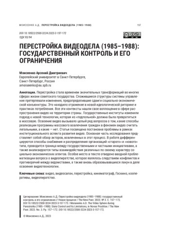 МОИСЕЕНКО А. Д. ПЕРЕСТРОЙКА ВИДЕОДЕЛА (1985-1988): ГОСУДАРСТВЕННЫЙ КОНТРОЛЬ И ЕГО ОГРАНИЧЕНИЯ // НОВОЕ ПРОШЛОЕ. 2023. № 3