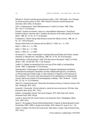 Статья: ПЕРЕСТРОЙКА ВИДЕОДЕЛА (1985-1988): ГОСУДАРСТВЕННЫЙ КОНТРОЛЬ И ЕГО ОГРАНИЧЕНИЯ (2023)