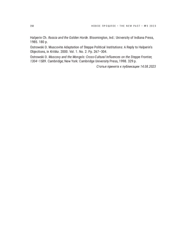 28. Ostrowski D. Muscovite Adaptation of Steppe Political Institutions: A Reply to Halperin’s Objections // Kritika. 2000. Vol. 1. № 2. Pр. 267-304.