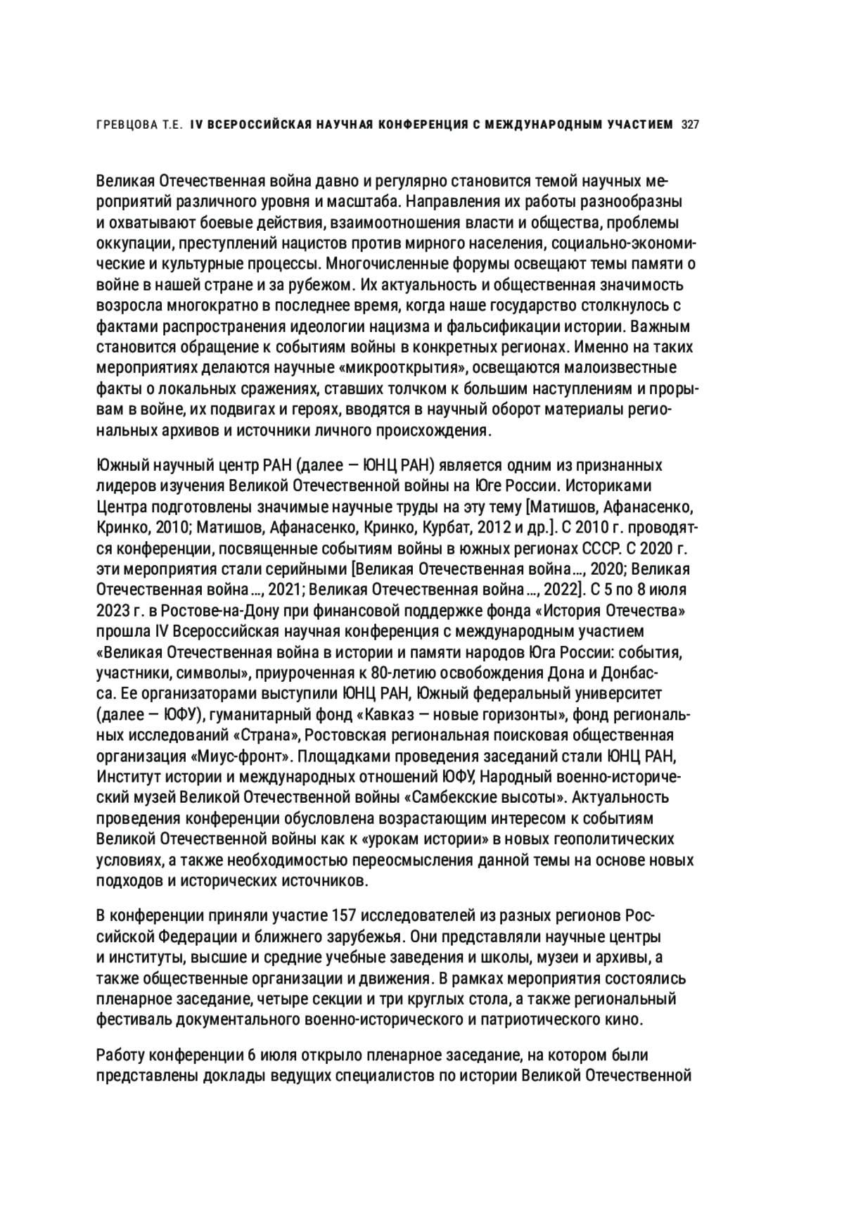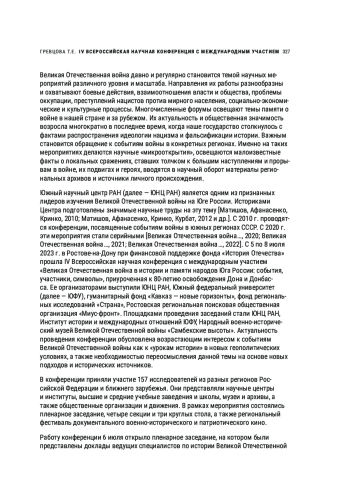 4. Великая Отечественная война в истории и памяти народов Юга России: события, участники, символы: материалы IV Всероссийской научной конференции с международным участием, посвященной 80-летию освобождения Дона и Донбасса (г. Ростов-на-Дону, 5-8 июля 2023 г.). Отв. ред. акад. Г.Г. Матишов. Ростов-на-Дону: Изд-во ЮНЦ РАН, 2023. 624 с.