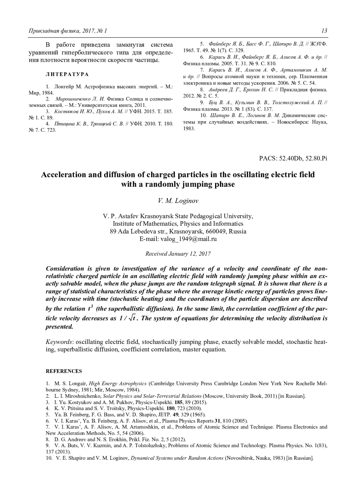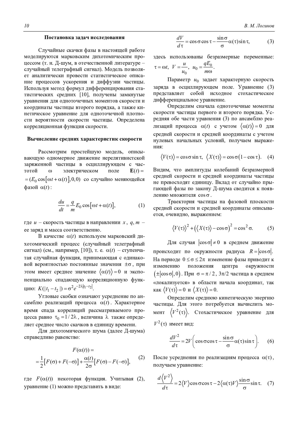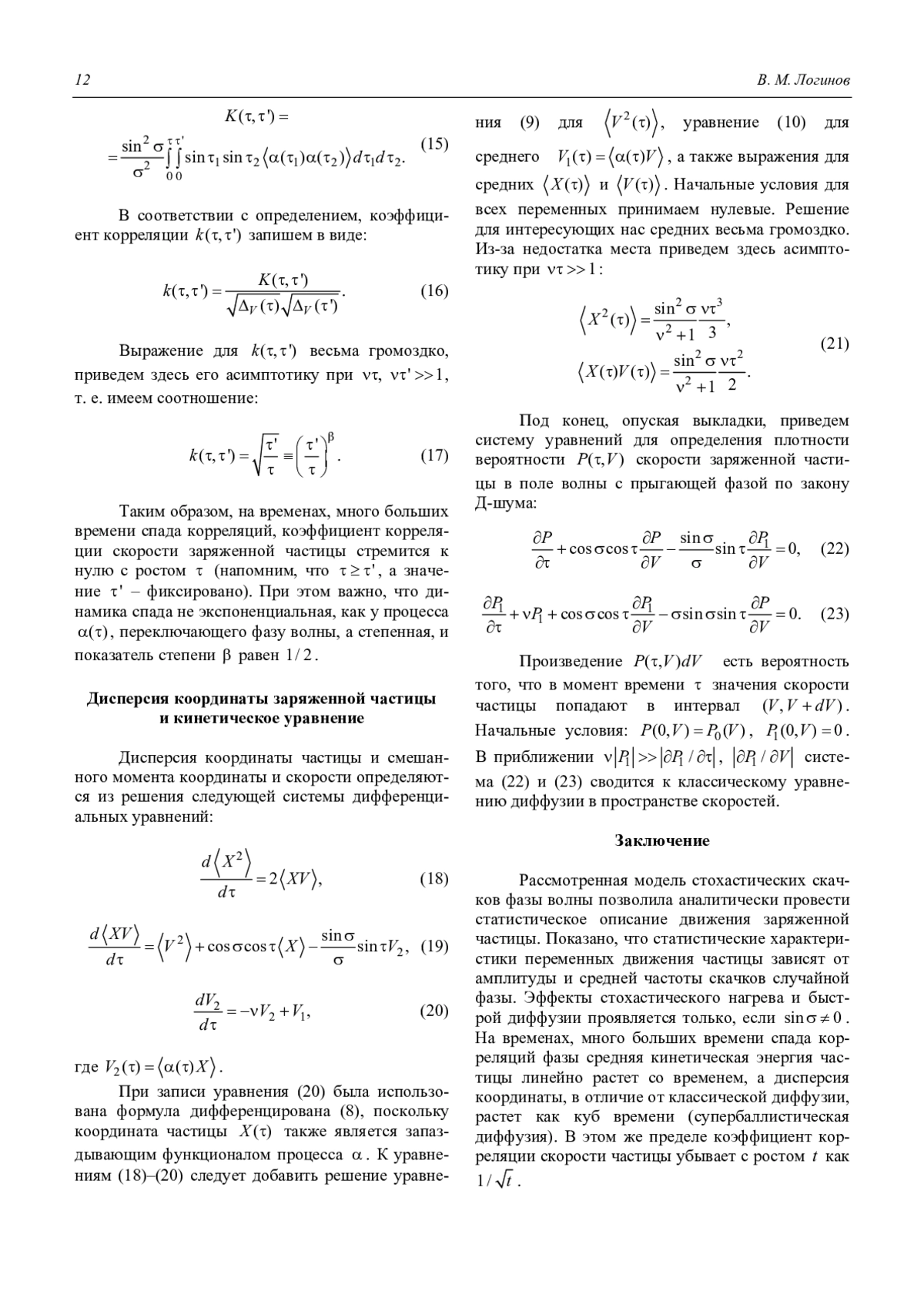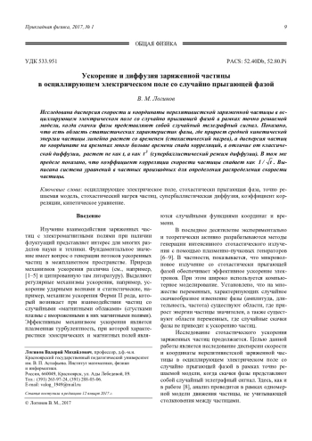 Исследована дисперсия скорости и координаты нерелятивистской заряженной частицы в осциллирующем электрическом поле со случайно прыгающей фазой в рамках точно решаемой модели, когда скачки фазы представляют собой случайный телеграфный сигнал. Показано, что есть область статистических характеристик фазы, где прирост средней кинетической энергии частицы линейно растет со временем (стохастический нагрев), а дисперсия частиц по координате на временах много больше времени спада корреляций, в отличие от классической диффузии, растет не как t, а как t 3 (супербаллистический режим диффузии). В том же пределе показано, что коэффициент корреляции скорости частицы спадает как 1 / t. Выписана система уравнений в частных производных для определения распределения скорости частицы.