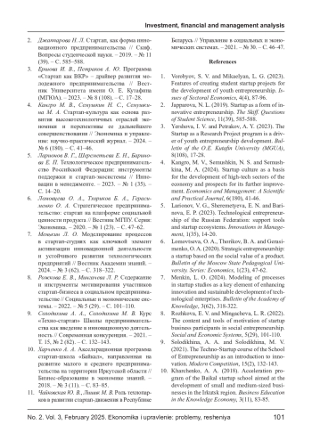 5. Ларионов В. Г., Шереметьева Е. Н., Баринова Е. П. Технологическое предпринимательство Российской Федерации: инструменты поддержки и стартап-экосистемы // Инновации в менеджменте. - 2023. - № 1 (35). - С. 14-20. EDN: ZMSRZN