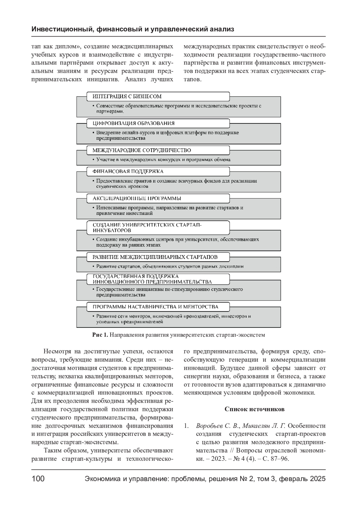1. Воробьев С. В., Микаелян Л. Г. Особенности создания студенческих стартап-проектов с целью развития молодежного предпринимательства // Вопросы отраслевой экономики. - 2023. - № 4 (4). - С. 87-96. EDN: KJYBXP