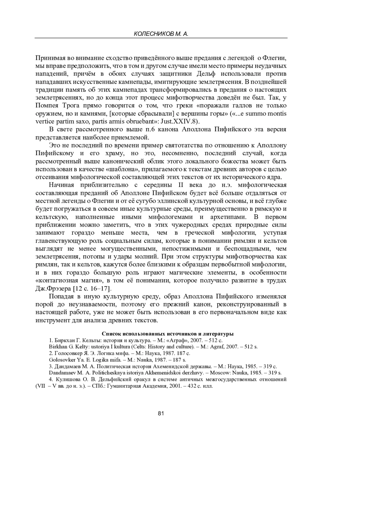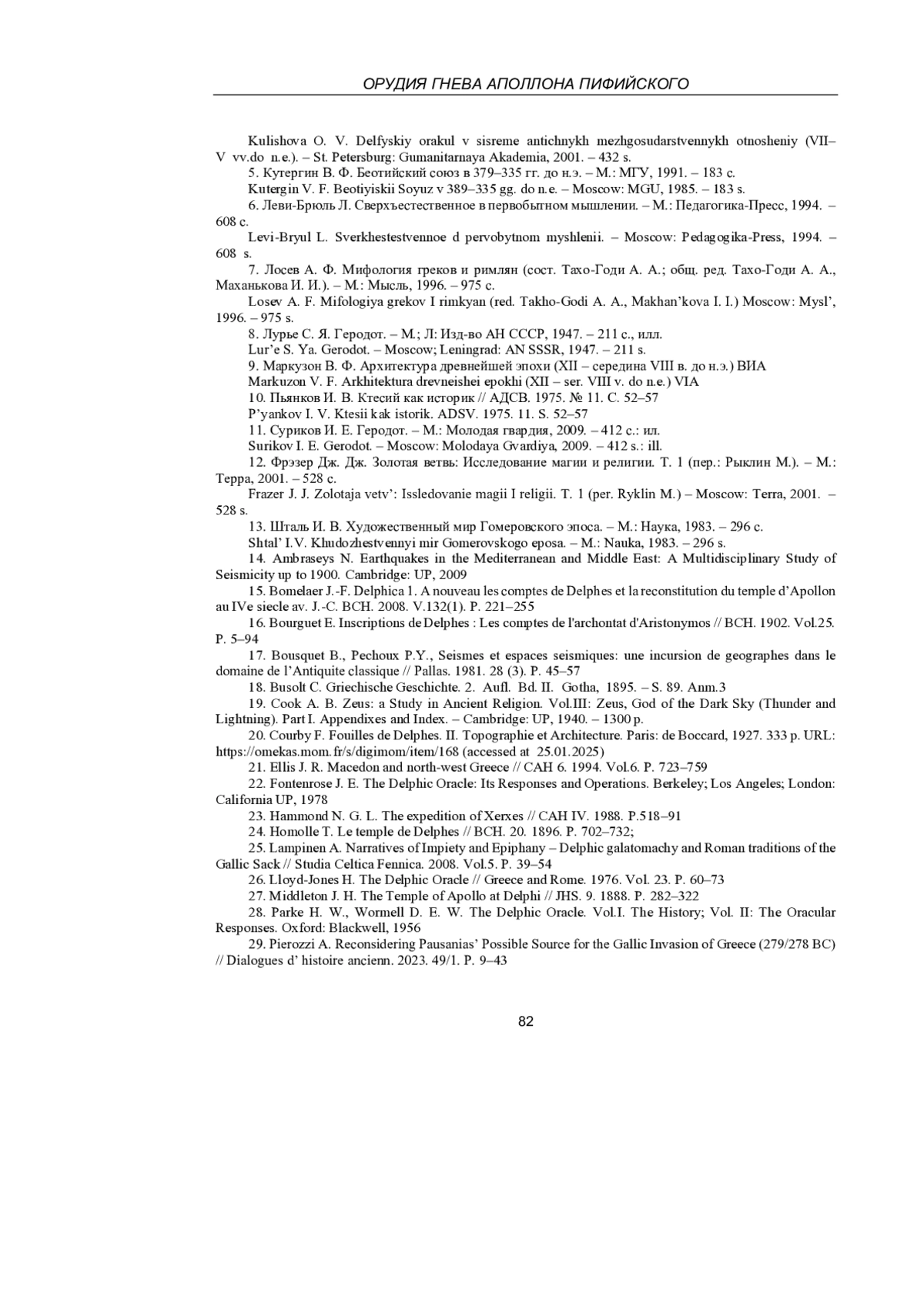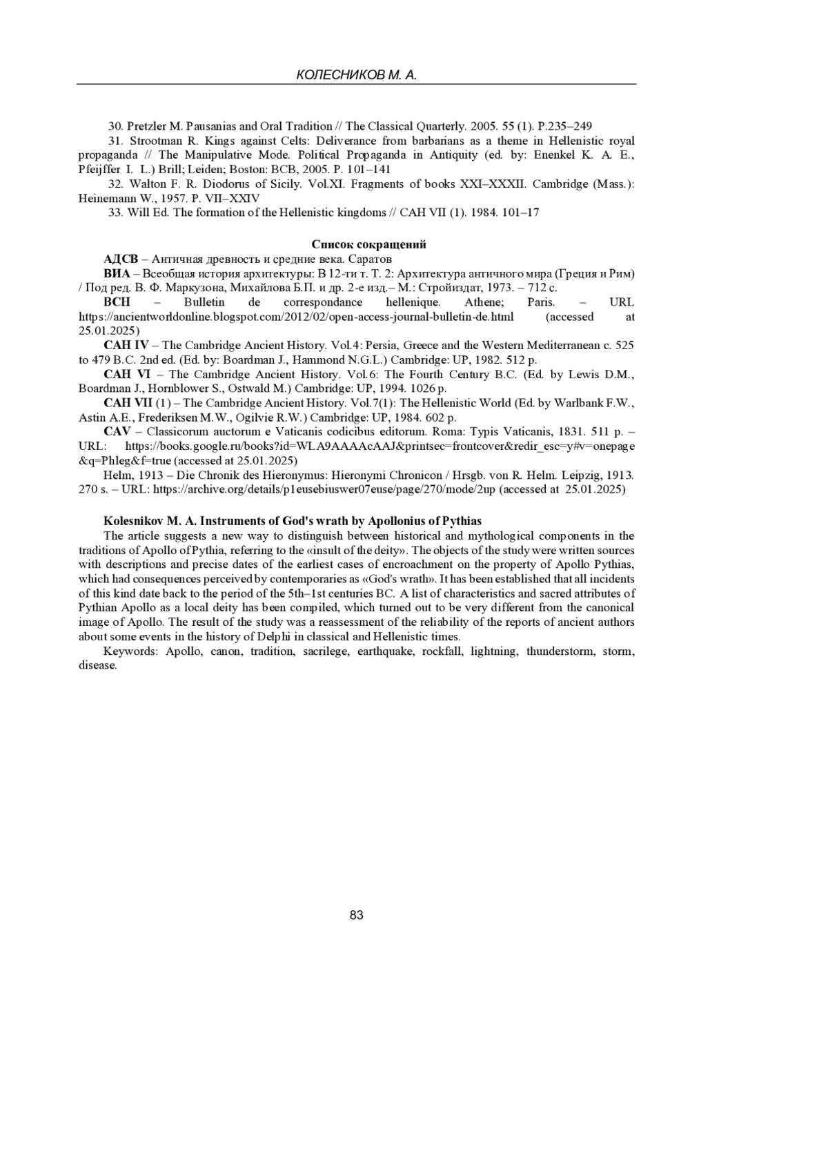 КОЛЕСНИКОВ М. А. ОРУДИЯ ГНЕВА АПОЛЛОНА ПИФИЙСКОГО // УЧЕНЫЕ ЗАПИСКИ КРЫМСКОГО ФЕДЕРАЛЬНОГО УНИВЕРСИТЕТА ИМЕНИ В. И. ВЕРНАДСКОГО. ИСТОРИЧЕСКИЕ НАУКИ. 2025. Т. 11 № 1