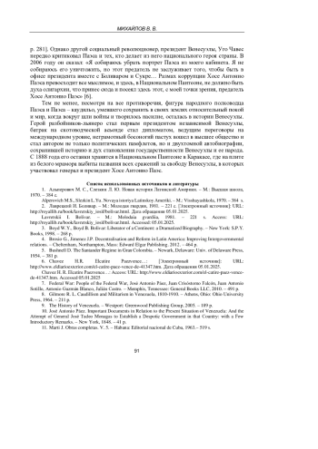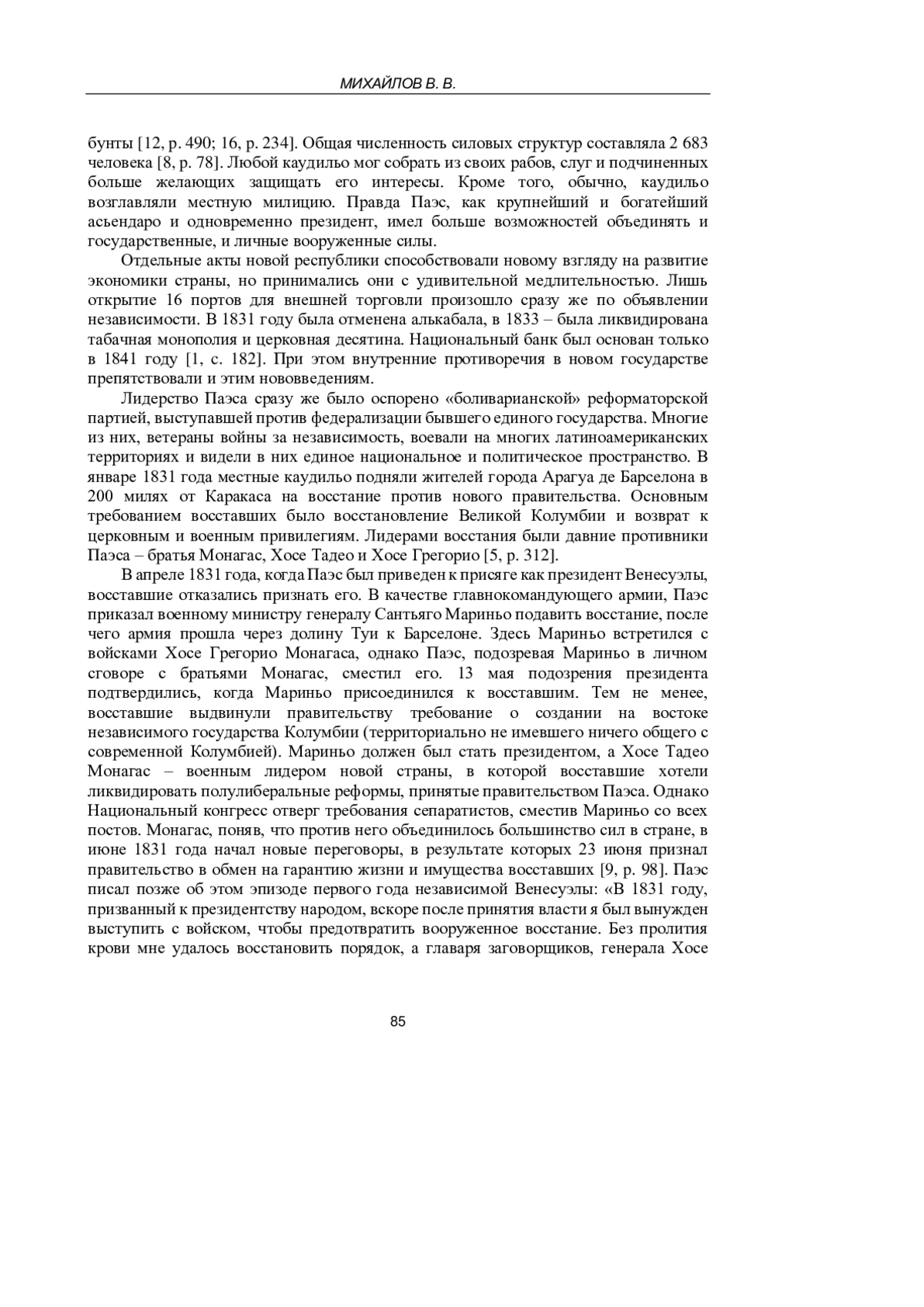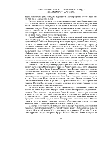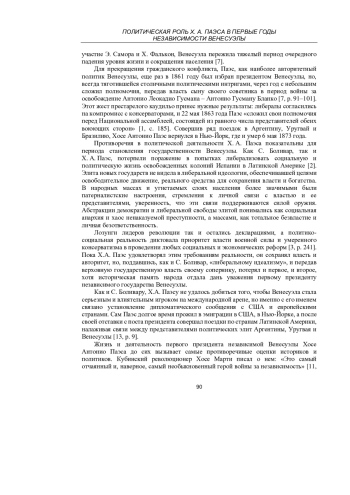 МИХАЙЛОВ В. В. ПОЛИТИЧЕСКАЯ РОЛЬ Х. А. ПАЭСА В ПЕРВЫЕ ГОДЫ НЕЗАВИСИМОСТИ ВЕНЕСУЭЛЫ // УЧЕНЫЕ ЗАПИСКИ КРЫМСКОГО ФЕДЕРАЛЬНОГО УНИВЕРСИТЕТА ИМЕНИ В. И. ВЕРНАДСКОГО. ИСТОРИЧЕСКИЕ НАУКИ. 2025. Т. 11 № 1