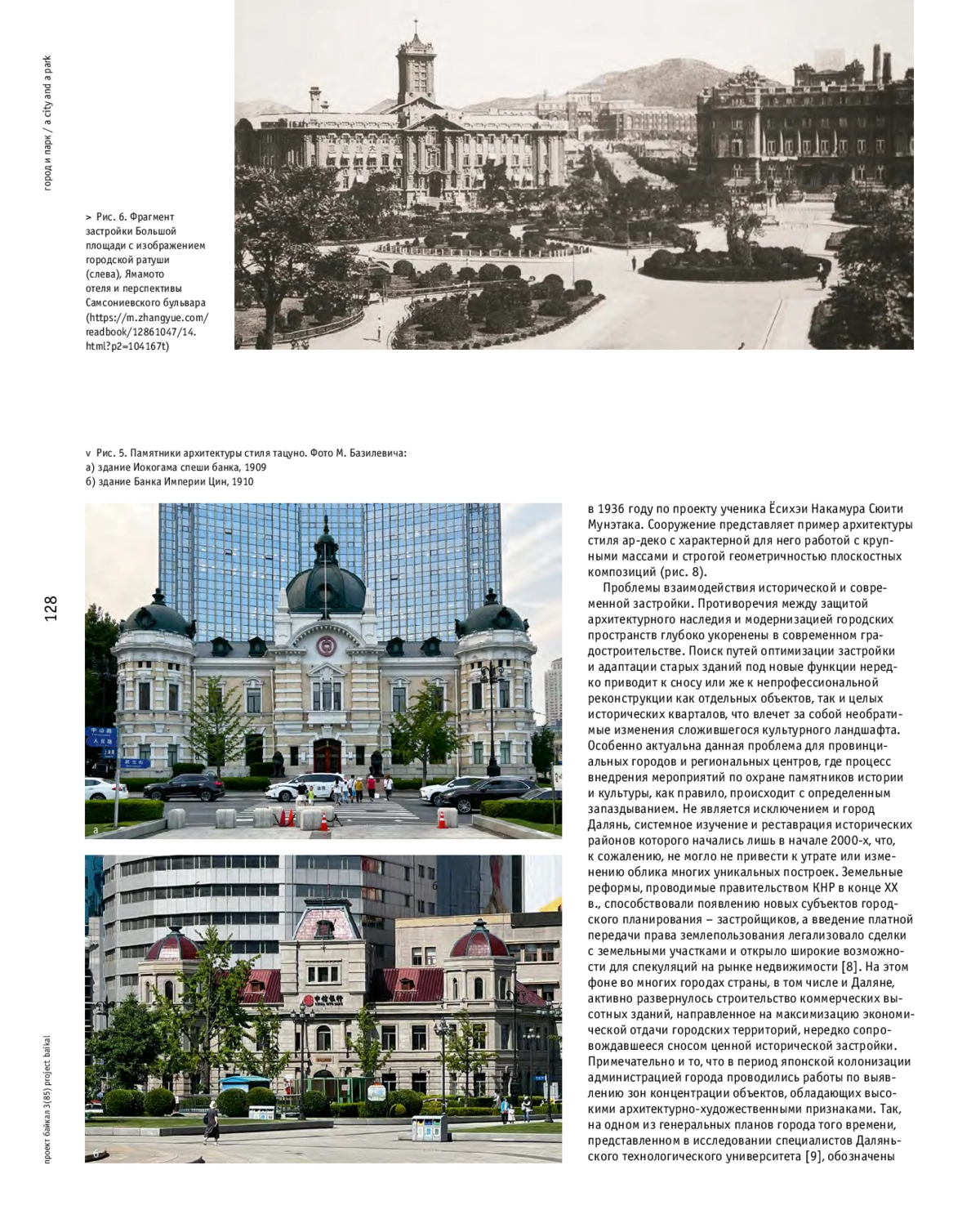 В статье представлены материалы и результаты исследования, проводимого автором при поддержке гранта Российского научного фонда «Методы интеграции зон исторической застройки и сохранения объектов культурного наследия в условиях развития современных городов северо-востока Китая». Приведены краткие исторические сведения, касающиеся процесса формирования планировочной структуры г. Даляня и его центральной площади - Чжуншань (Николаевской, Большой). Рассмотрены композиционные, объемно-планировочные и стилистические особенности исторических и современных зданий и сооружений, образующих в настоящее время целостный архитектурный ансамбль площади.