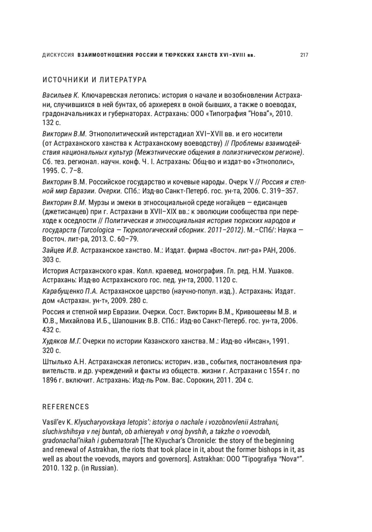 5. Зайцев И.В. Астраханское ханство. М.: Издат. фирма “Восточ. лит-ра” РАН, 2006. 303 с. EDN: QPEMAR