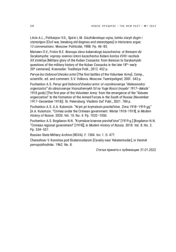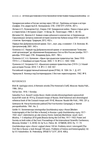 6. Гражданская война в России: взгляд через 100 лет. Проблемы истории и историографии. Отв. редактор В.В. Калашников. СПб.: СПбГЭТУ “ЛЭТИ”. 407 с.