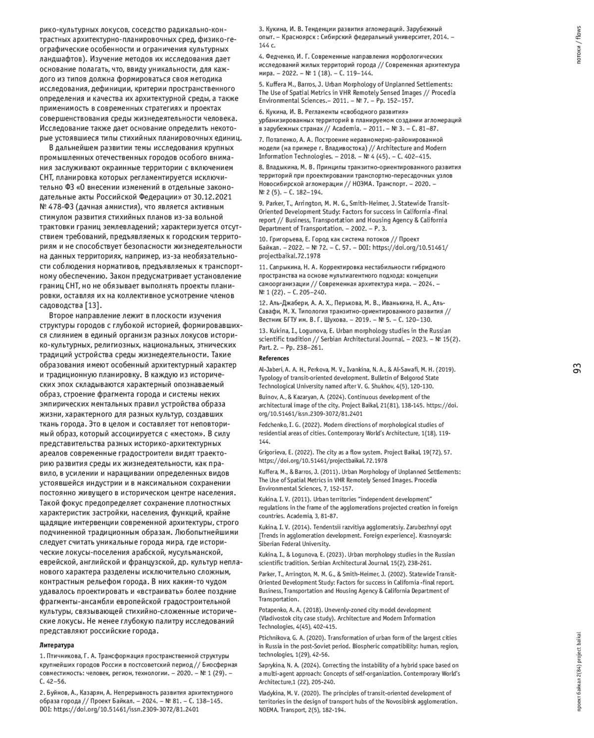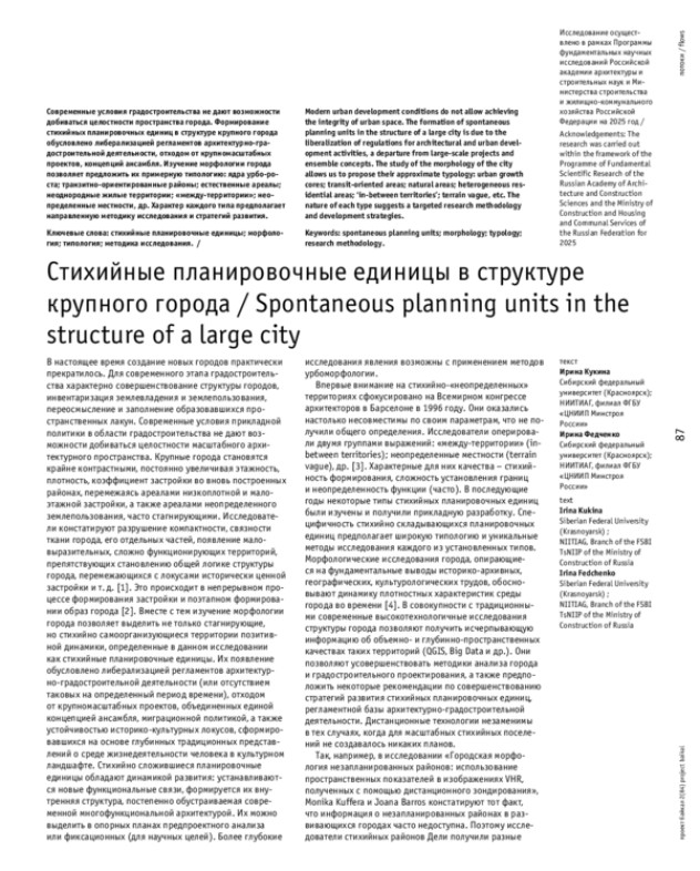 КУКИНА И., ФЕДЧЕНКО И. СТИХИЙНЫЕ ПЛАНИРОВОЧНЫЕ ЕДИНИЦЫ В СТРУКТУРЕ КРУПНОГО ГОРОДА // ПРОЕКТ БАЙКАЛ. 2025. № 84, ТОМ 22