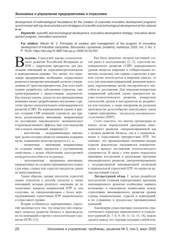 5. Никулин М. В., Горбашко Е. А. Методологические основы и принципы создания корпоративных стратегий инновационного развития промышленных компаний // Экономика и управление: проблемы, решения. - 2024. EDN: WXPLXY