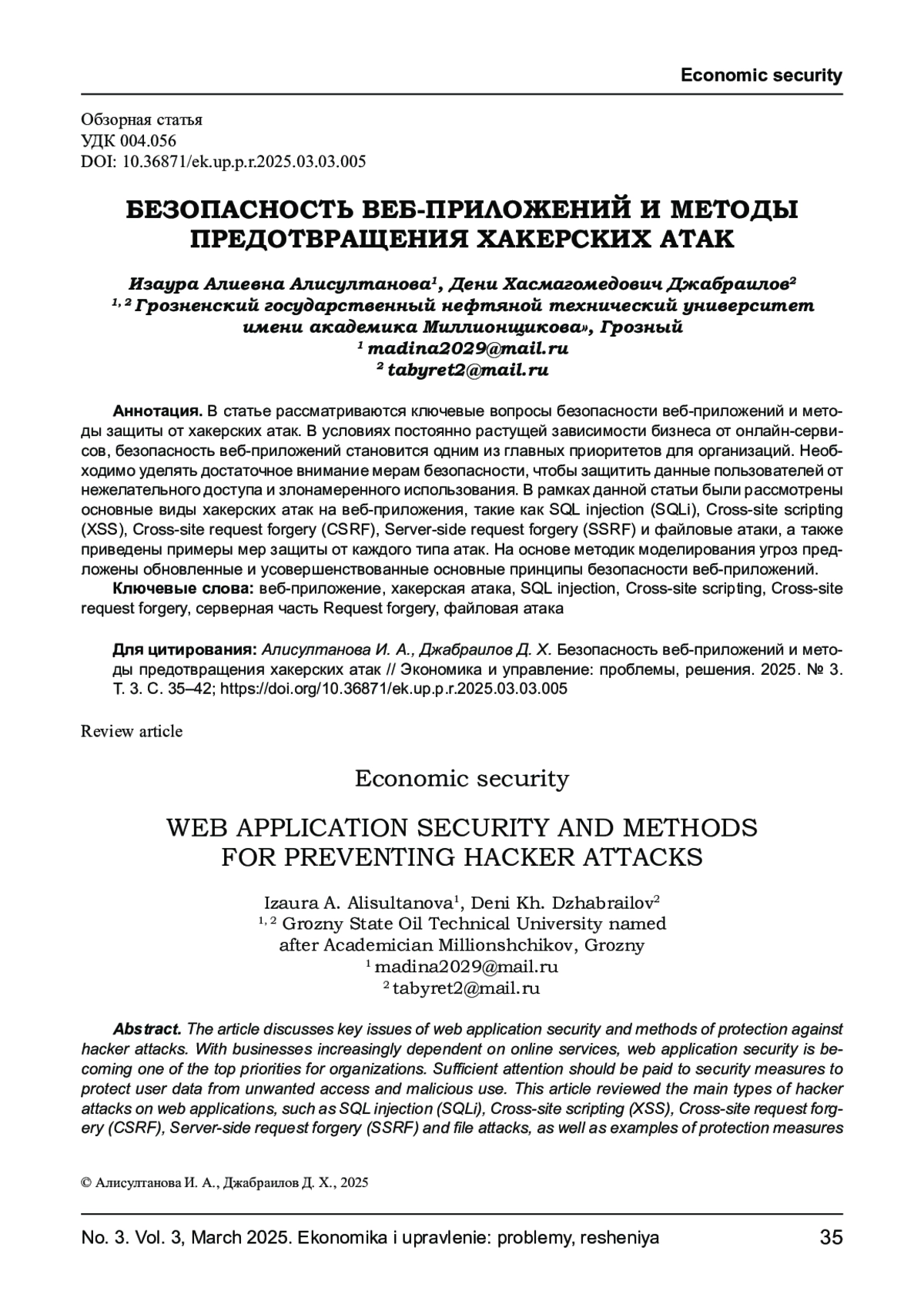 13. Фелт А. П., Финифтер М., Чин Э., Ханна С., Вагнер Д. Обзор исследований в области веб-безопасности. IEEE Transactions по информационной криминалистике и безопасности, 6(3), 2011. - С. 1-17. DOI: 10.1109/TIFS.2011.2118713