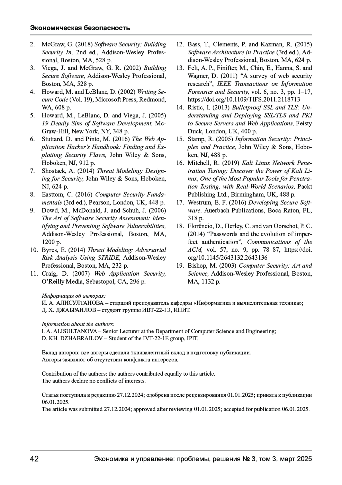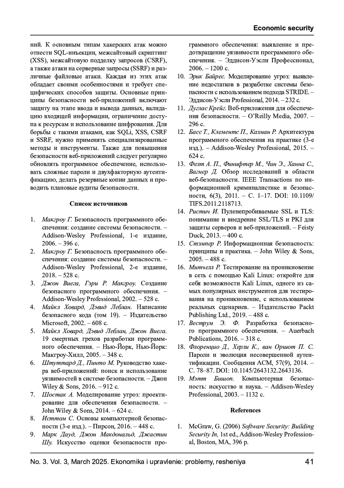 2. Макгроу Г. Безопасность программного обеспечения: создание системы безопасности. - Addison-Wesley Professional, 2-е издание, 2018. - 528 с.