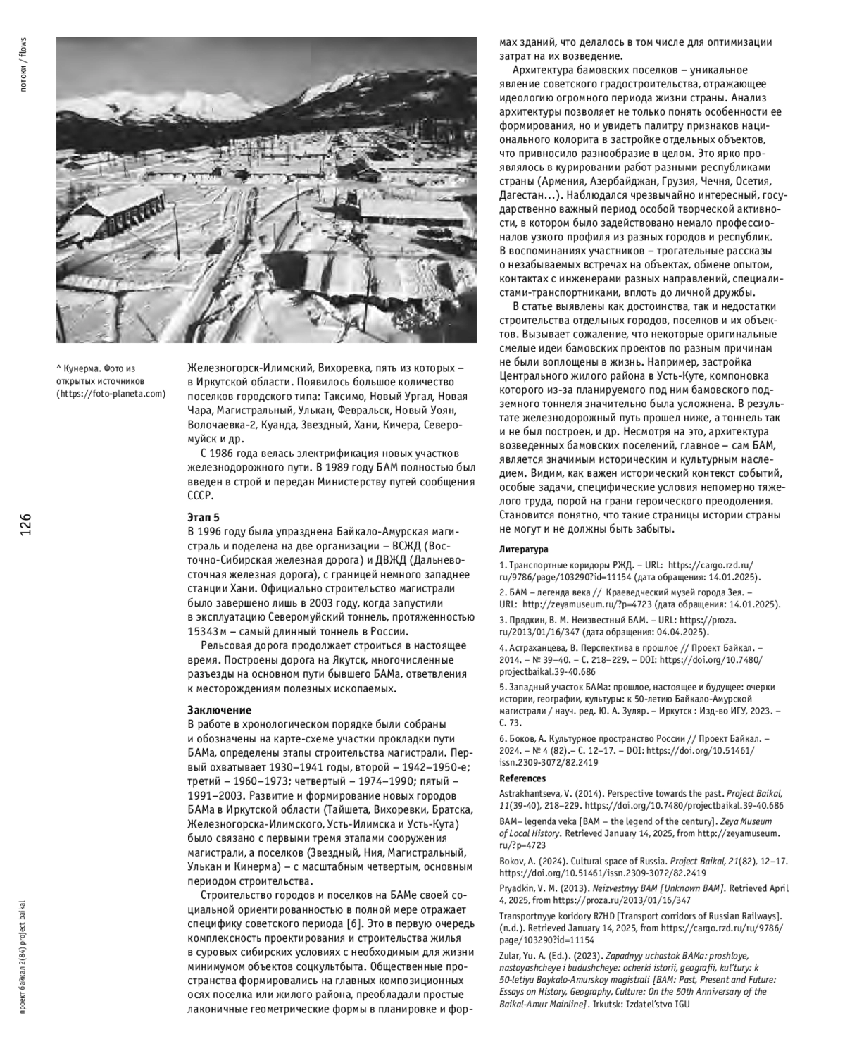 5. Западный участок БАМа: прошлое, настоящее и будущее: очерки истории, географии, культуры: к 50-летию Байкало-Амурской магистрали / науч. ред. Ю. А. Зуляр. - Иркутск: Изд-во ИГУ, 2023. - С. 73.