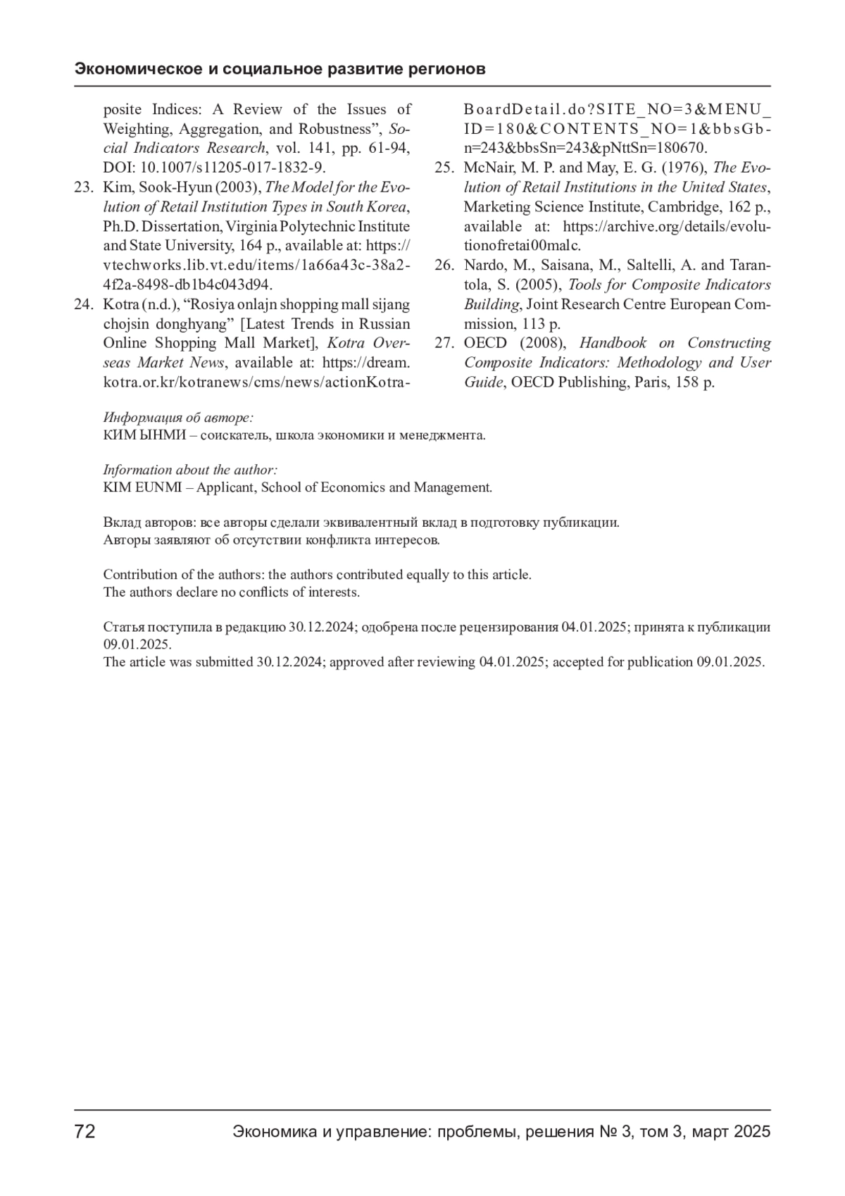 23. Kim Sook-Hyun. The model for the evolution of retail institution types in south Korea. Virginia Polytechnic Institute and State University. Ph. D. Dissertation. 2003. 164 p. URL: https://vtechworks.lib.vt.edu/items/1a66a43c-38a2-4f2a-8498-db1b4c043d94.