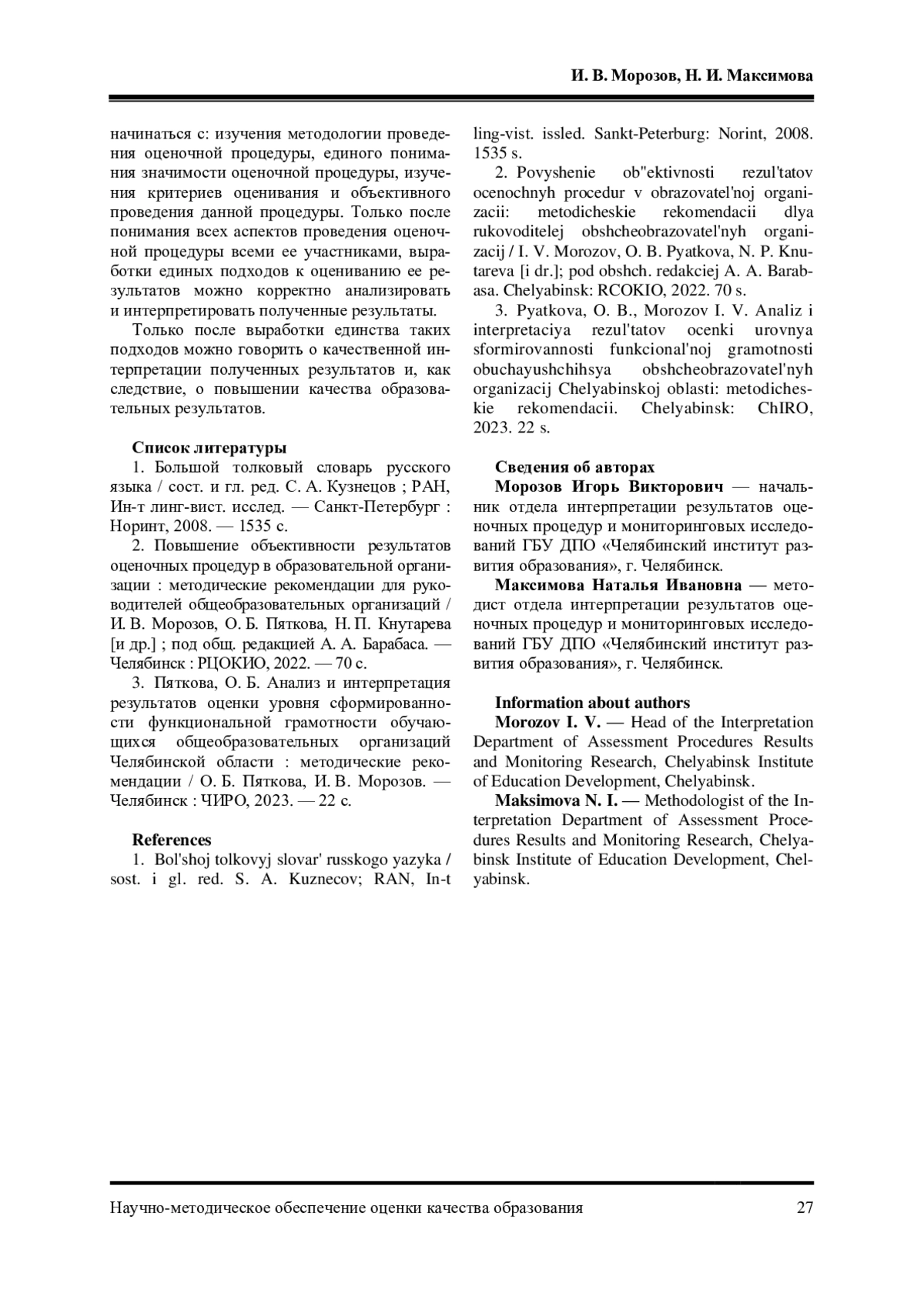 Автор (ы): Морозов Игорь Викторович, Максимова Наталья Ивановна