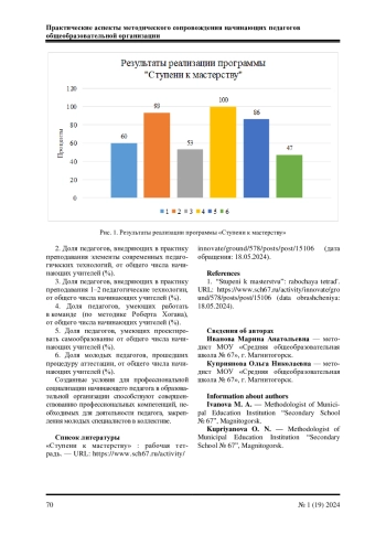В статье представлены практические аспекты методического сопровождения начинающих педагогов МОУ СОШ № 67 г. Магнитогорска. Описан опыт реализации программы методического сопровождения начинающих педагогов «Ступени к мастерству».