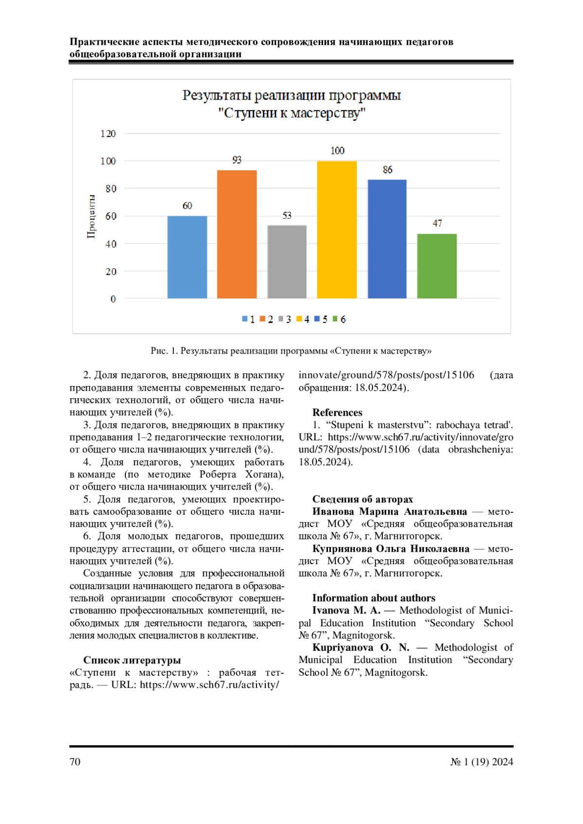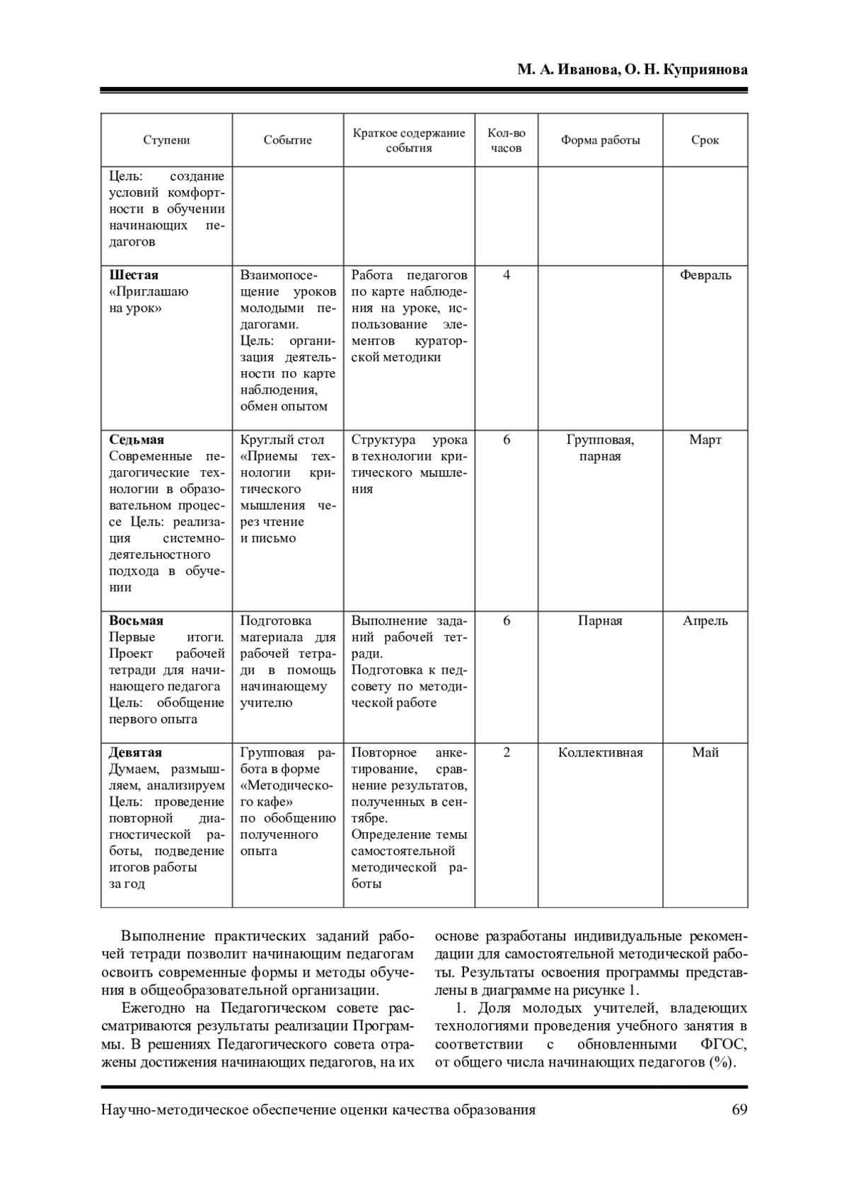 КУПРИЯНОВА О. Н., ИВАНОВА М. А. МЕХАНИЗМЫ УПРАВЛЕНИЯ КАЧЕСТВОМ ОБРАЗОВАТЕЛЬНОЙ ДЕЯТЕЛЬНОСТИ: СИСТЕМА МЕТОДИЧЕСКОЙ РАБОТЫ С МОЛОДЫМИ СПЕЦИАЛИСТАМИ В ОБЩЕОБРАЗОВАТЕЛЬНОЙ ОРГАНИЗАЦИИ // НАУЧНО-МЕТОДИЧЕСКОЕ ОБЕСПЕЧЕНИЕ ОЦЕНКИ КАЧЕСТВА ОБРАЗОВАНИЯ. 2024. № 1 (19)